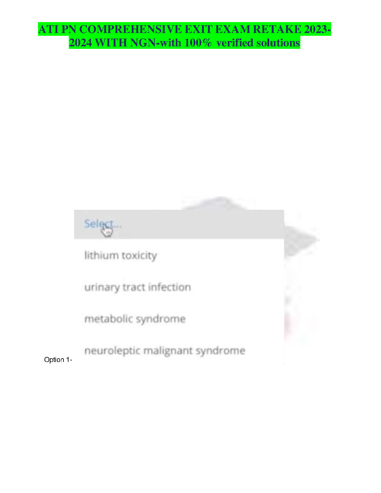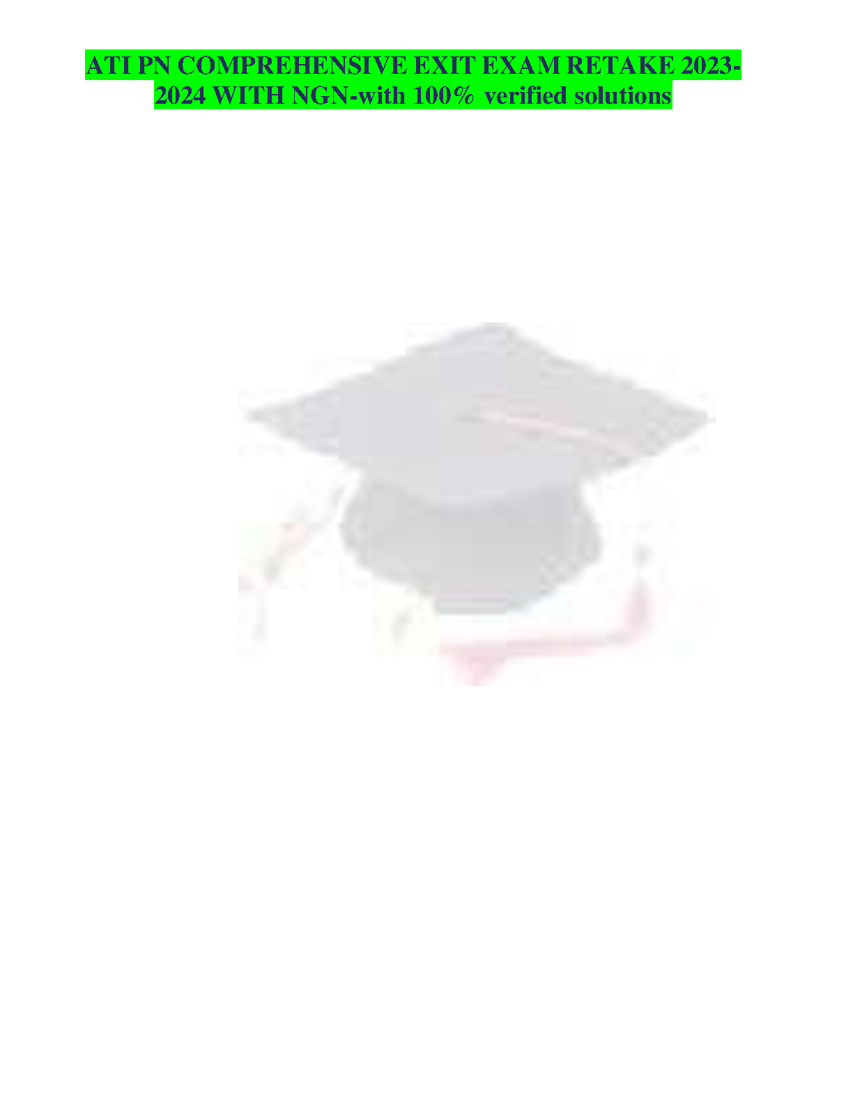 Ace your ATI PN Comprehensive Exit Exam Retake with this comprehensive study guide! It includes 100% verified solutions and is updated for 2023-2024 to ensure you're prepared for the latest exam content. Get the confidence you need to pass your exam on the first try and avoid any resits.