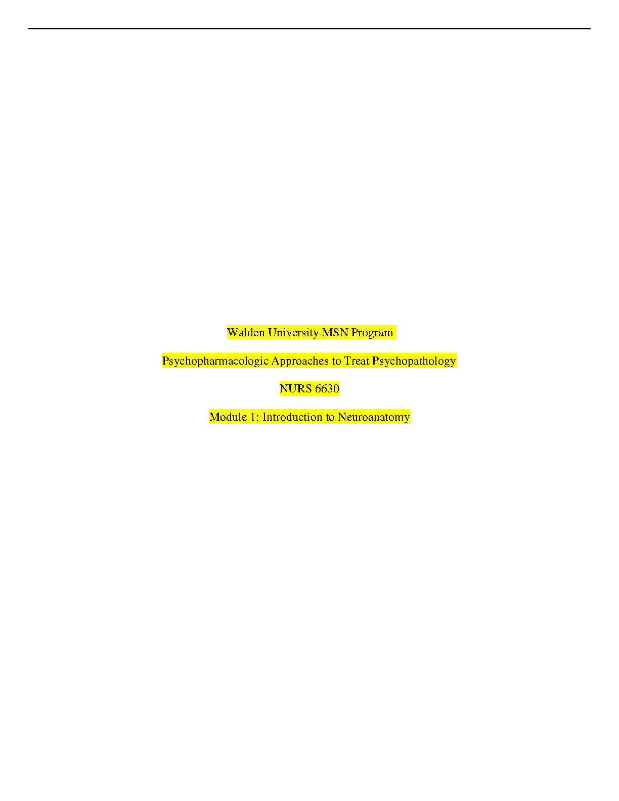 Walden University MSN Program: Psychopharmacologic Approaches to Treat Psychopathology Nurs 6630: Introduction to Neuroanatomy