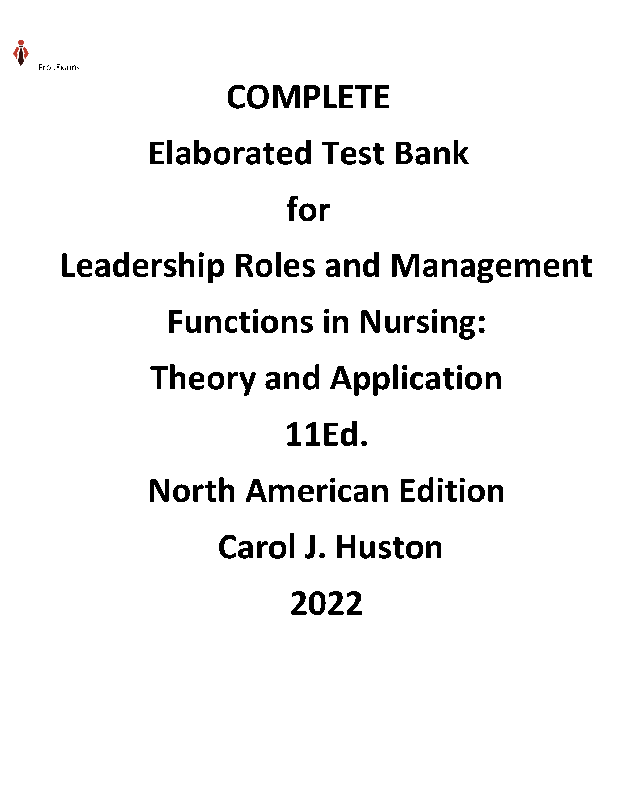 Leadership Roles and Management Functions in Nursing: Theory and Application, 11th Edition by Carol J. Huston Test Bank