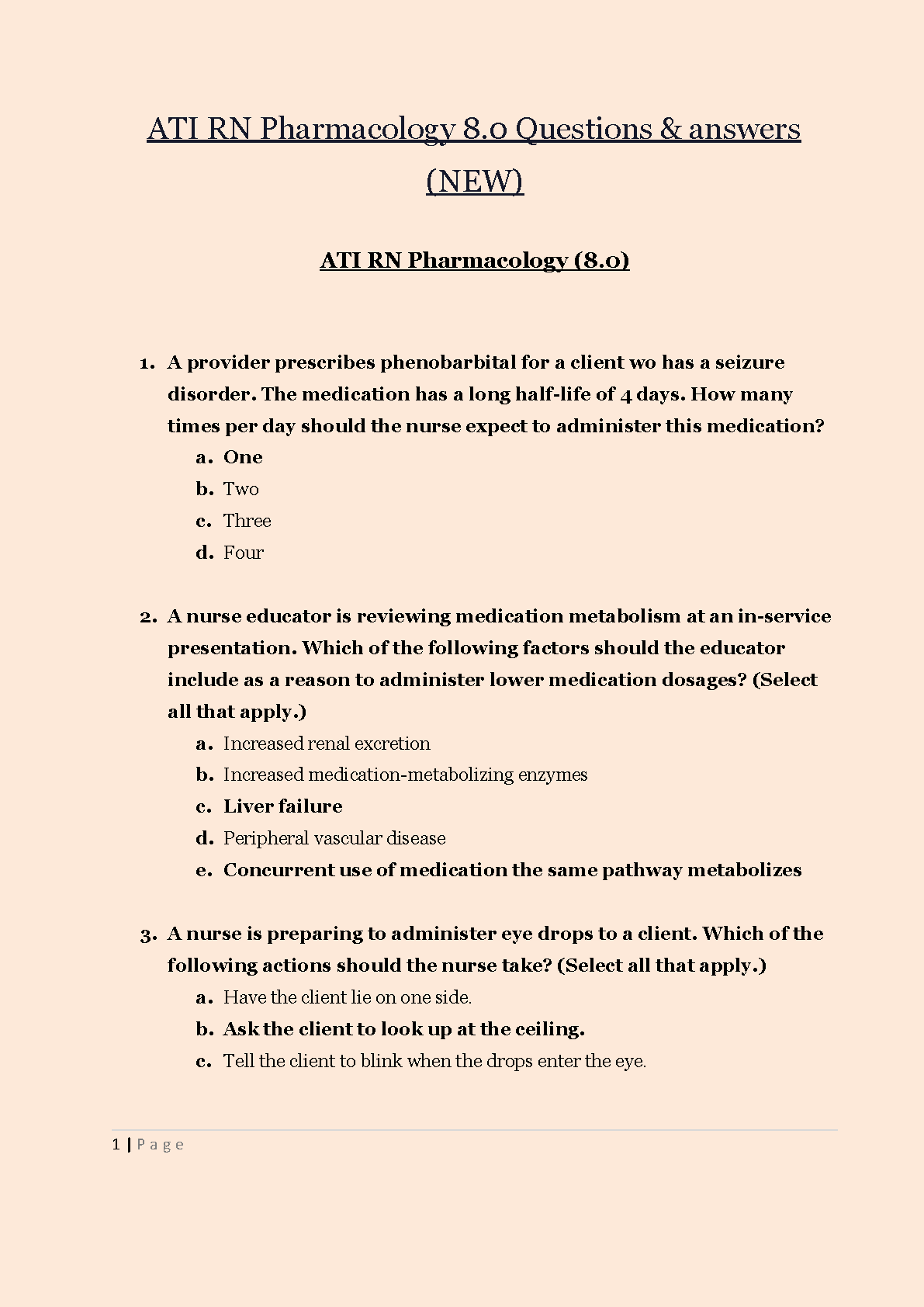ATI RN Pharmacology 8.0 Questions & Answers by the ATI Nursing Education 2024/2025 Edition - Ace your Exam on the First Try!