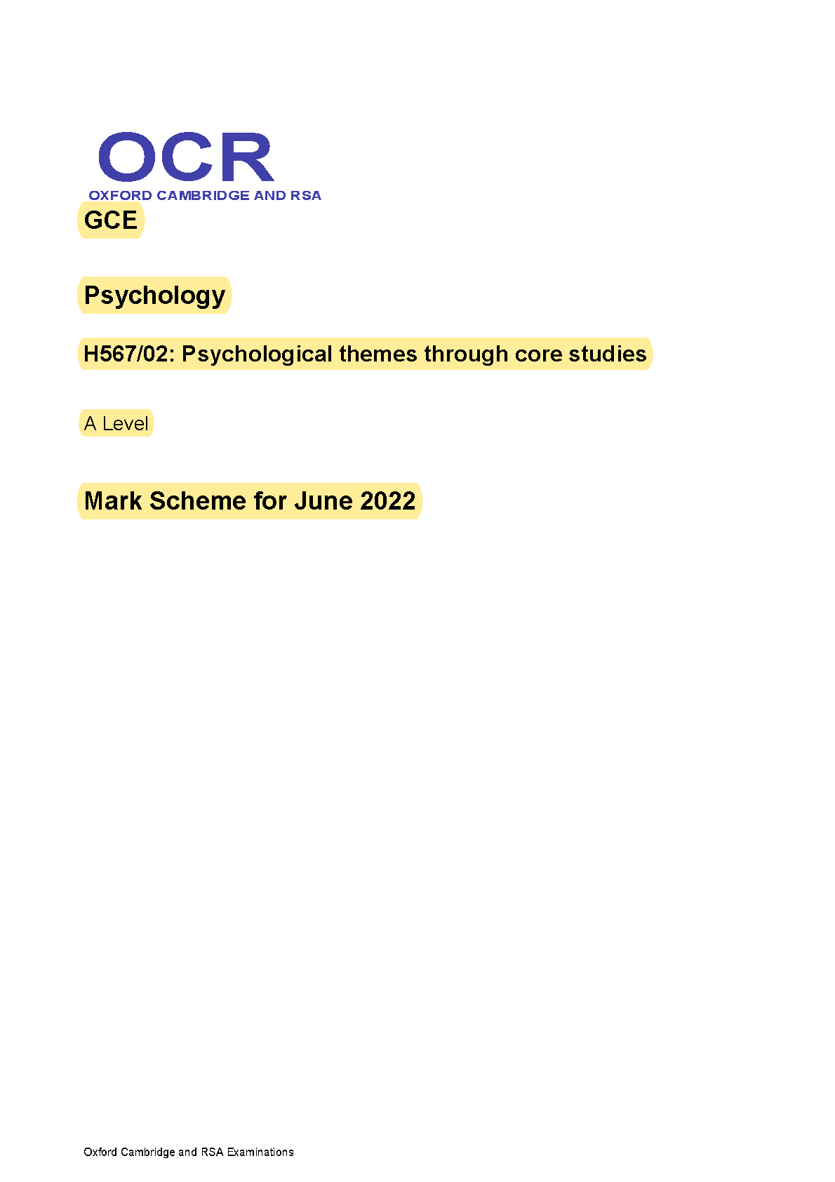 OCR A Level Psychology H567/02: Mark Scheme June 2022 - Pass Your Exams On The First Attempt