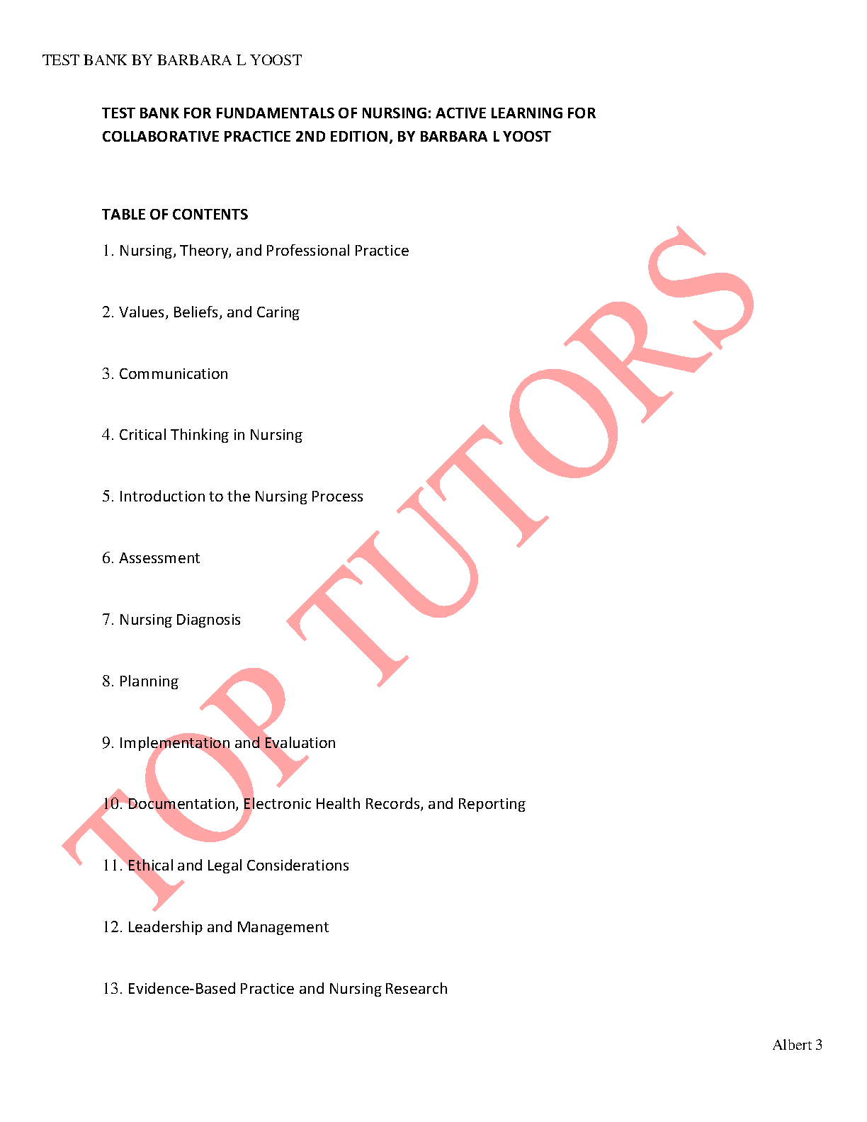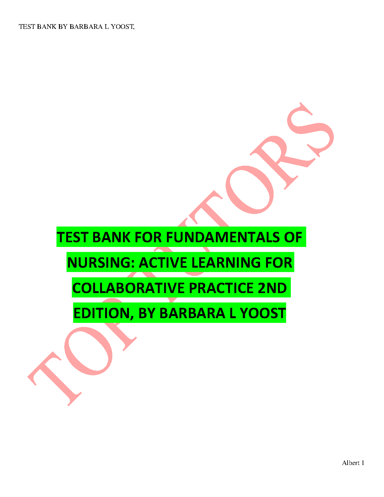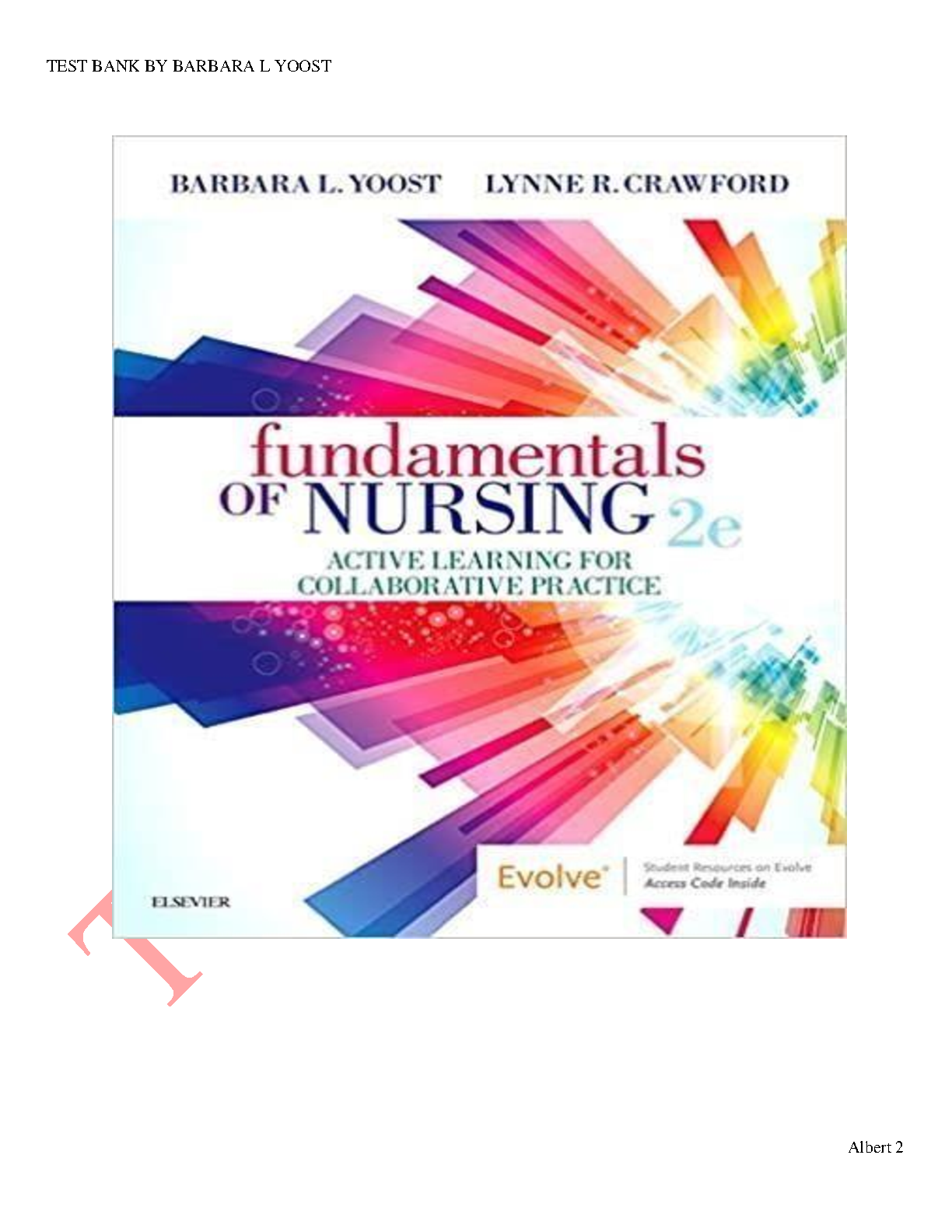 This is the Test Bank for the 2nd edition of Fundamentals of Nursing: Active Learning for Collaborative Practice by Barbara L. Yoost and Lorie S. A. Barrow. This test bank provides you with a collection of comprehensive questions and answers that will help you master the fundamentals of nursing, prepare for exams, and succeed in your nursing studies.