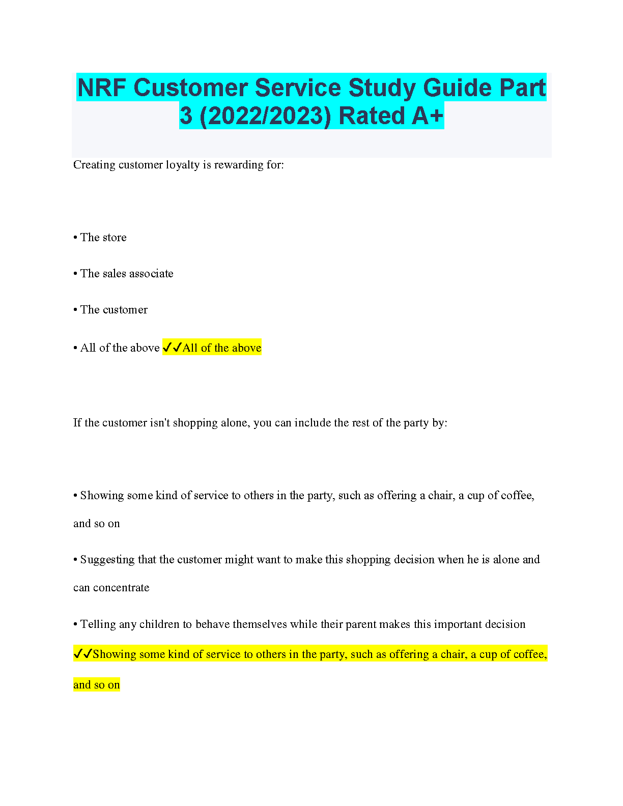 NRF Customer Service Study Guide Part 3 (2022/2023) - A Comprehensive Guide to Customer Loyalty and Service Excellence