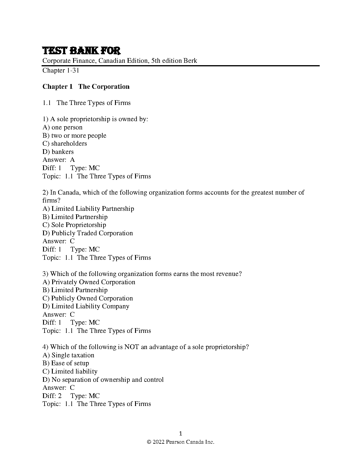 Ace your exams on the first attempt with this comprehensive test bank for Corporate Finance, Canadian Edition, 5th Edition by Berk & DeMarzo. Access a wealth of practice questions, covering all key topics, to solidify your understanding and boost your confidence.