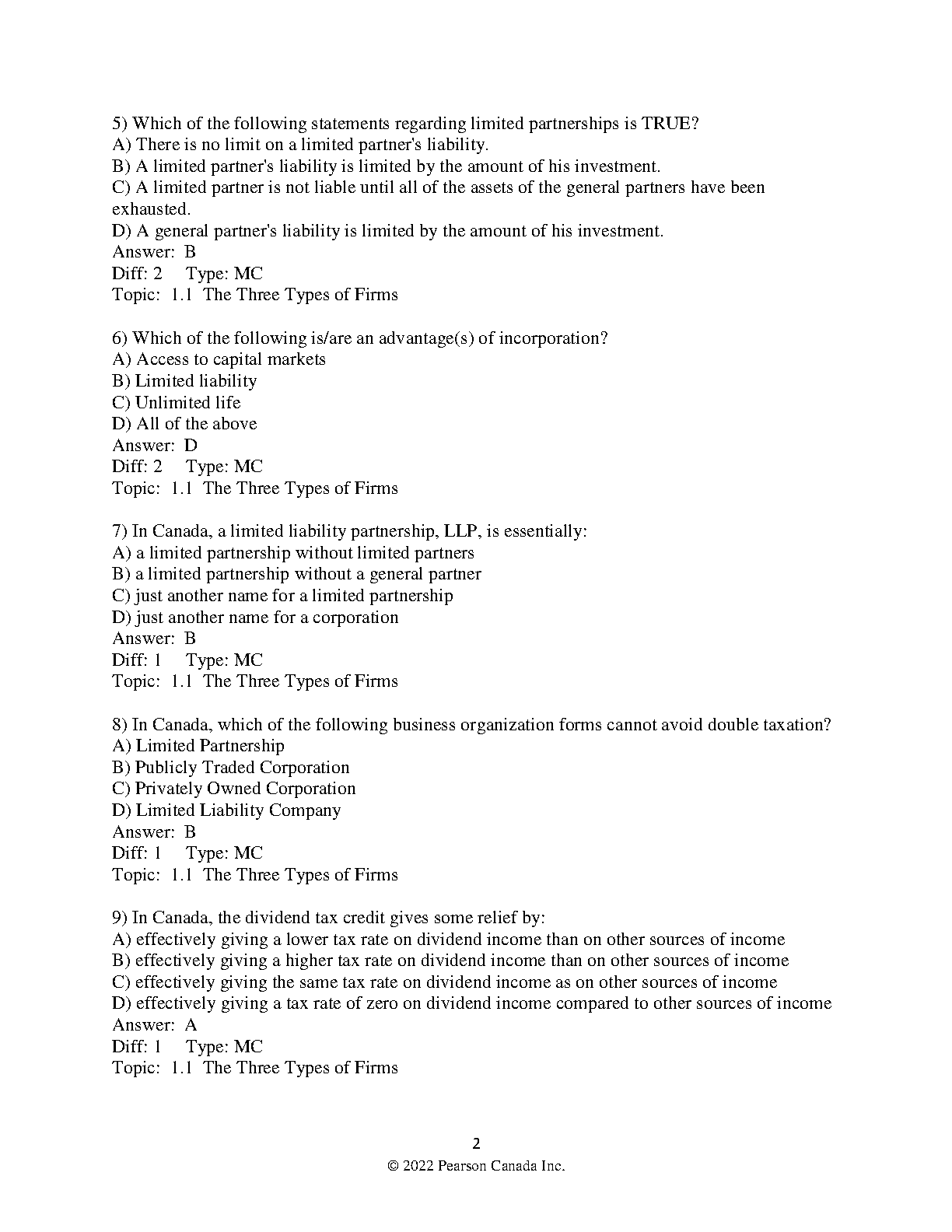 Test Bank for Corporate Finance, Canadian Edition, 5th Edition, Berk & DeMarzo