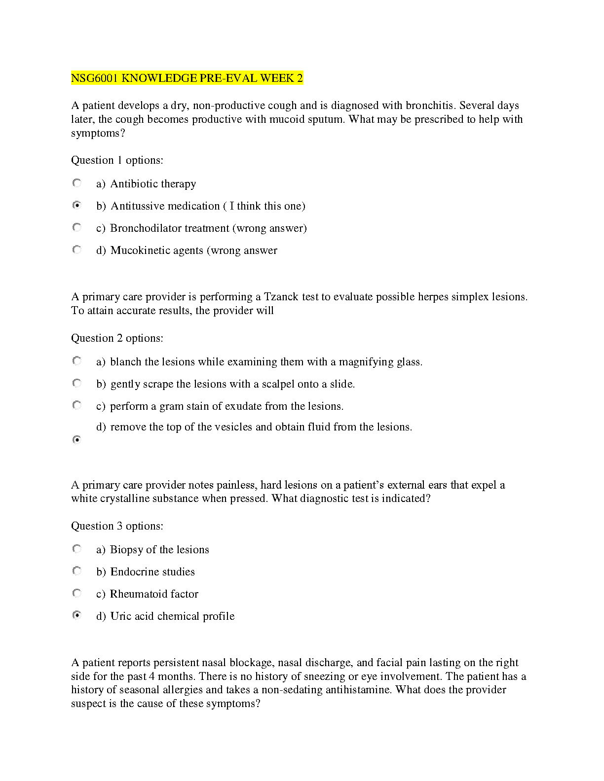 NSG6001 KNOWLEDGE PRE EVAL WEEK 2.LATEST UPDATED 2023!!!