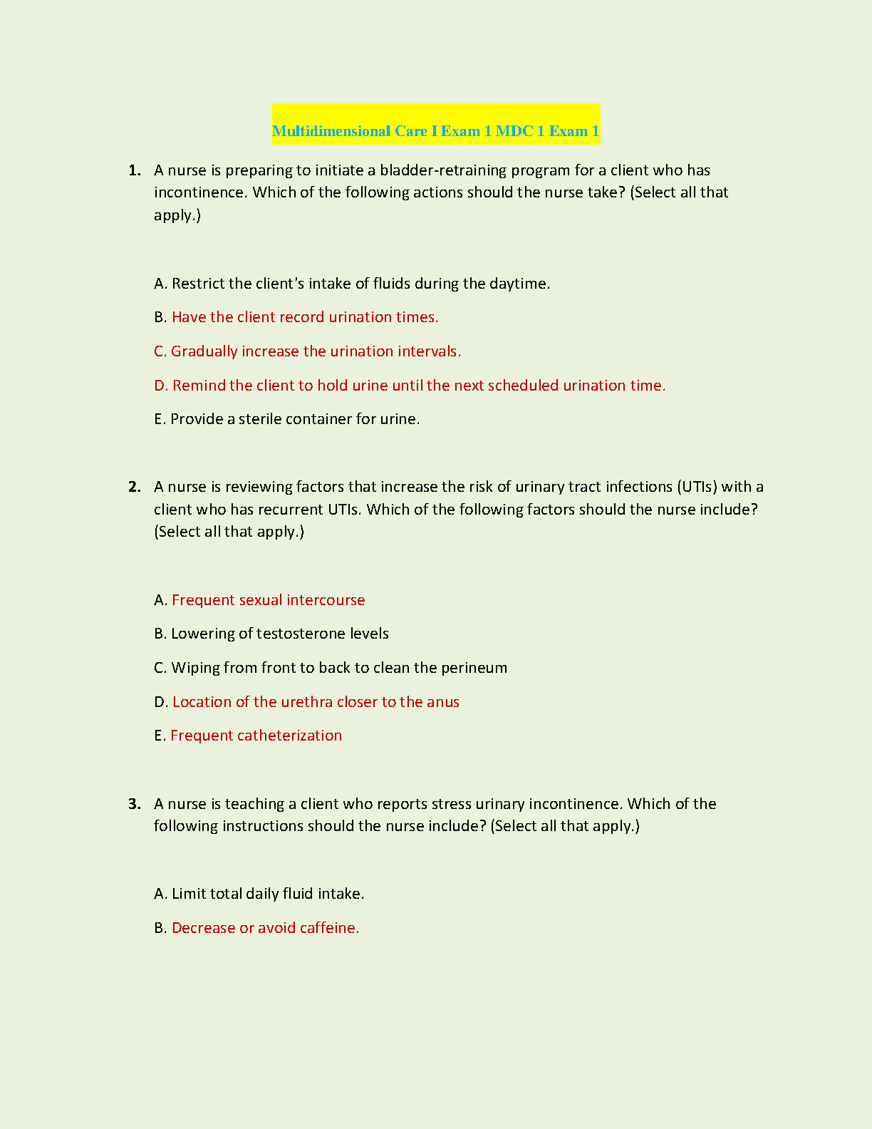 NUR 2356 Multidimensional Care I Exam Questions and Answers by Barbara Cherry and Susan Jacob - Latest Update 2024/2025
