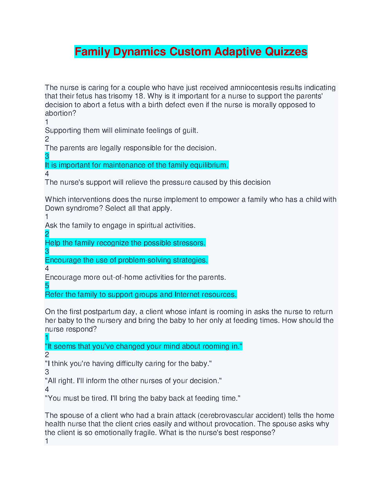 Family Dynamics Custom Adaptive Quizzes - 2024/2025 Edition by [Author Name]