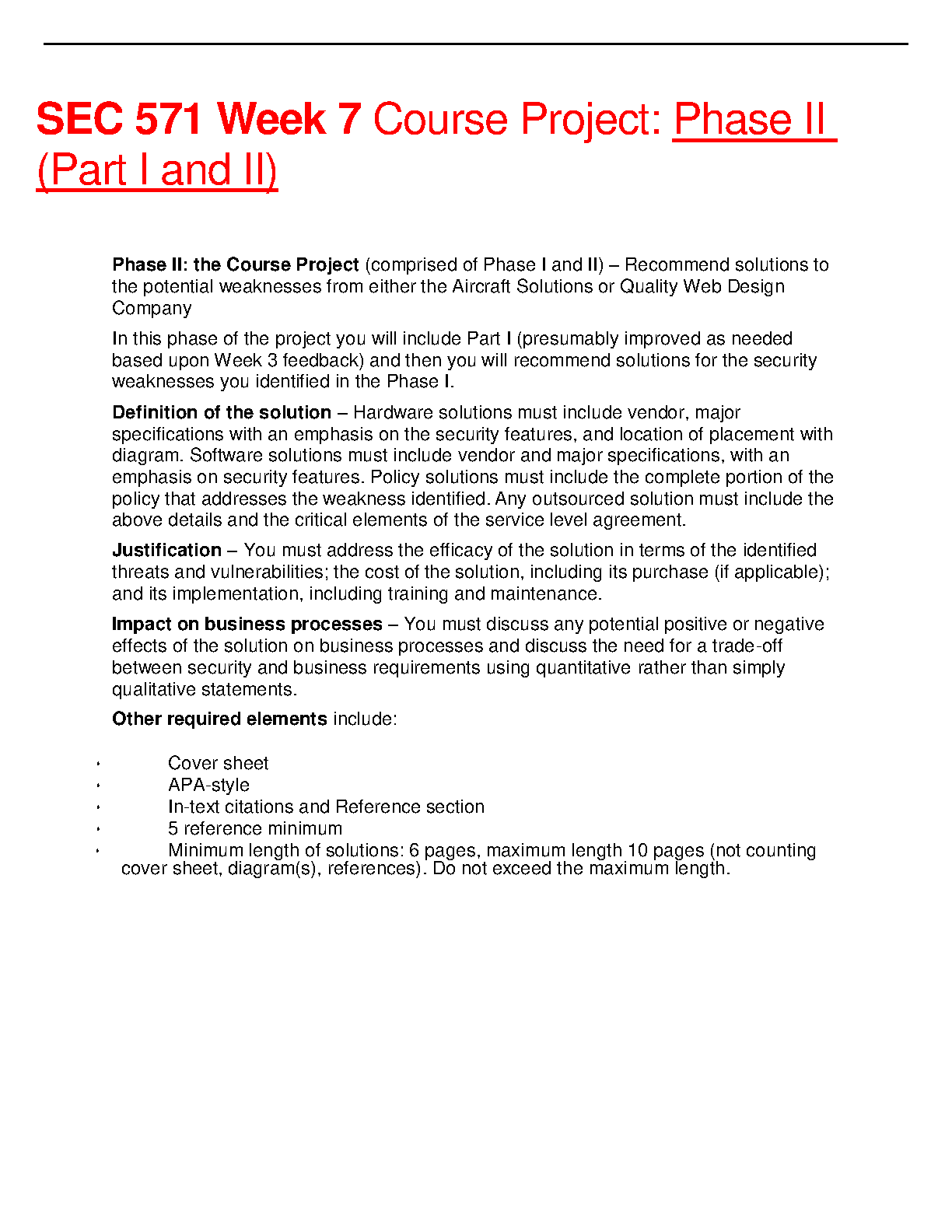 SEC 571 Week 7 Course Project: Phase II (Part I and II) - 2024/2025 Edition - Ace Your Exams on the First Attempt!