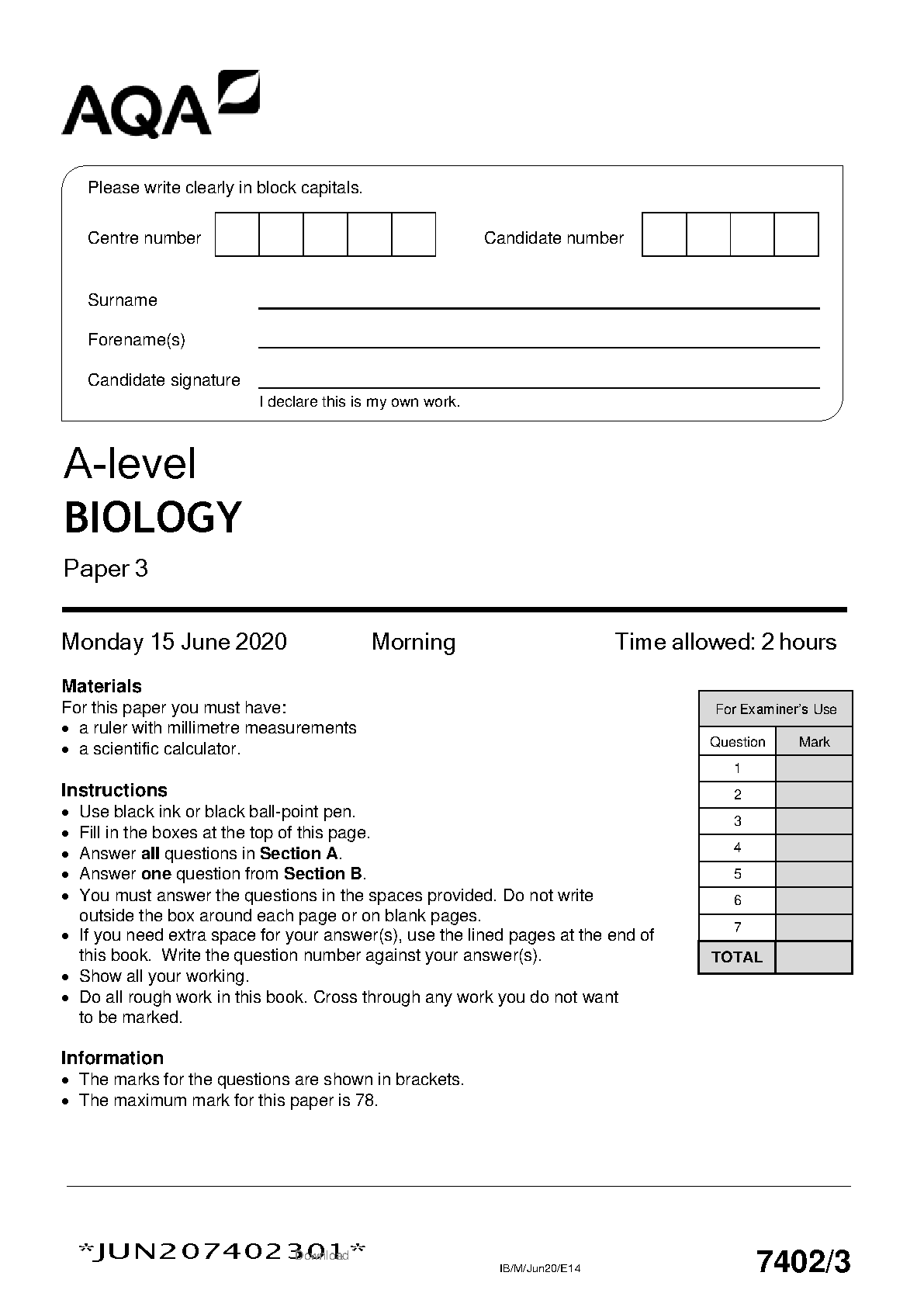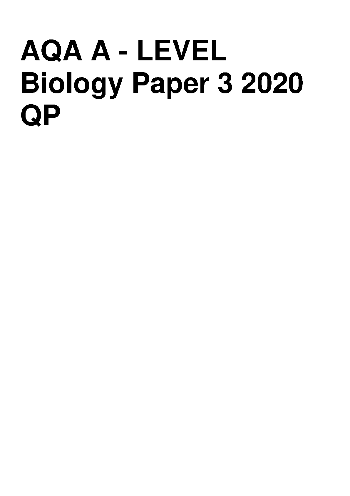 AQA A-Level Biology Paper 3 2020 QP - Ace Your Exams With This Essential Resource