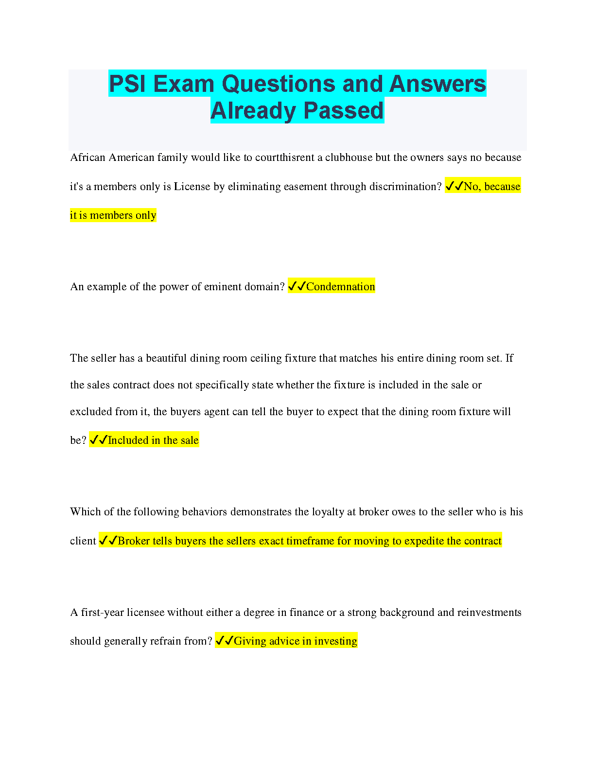 PSI Exam Questions and Answers Already Passed - Ace Your Exam with This Comprehensive Guide!
