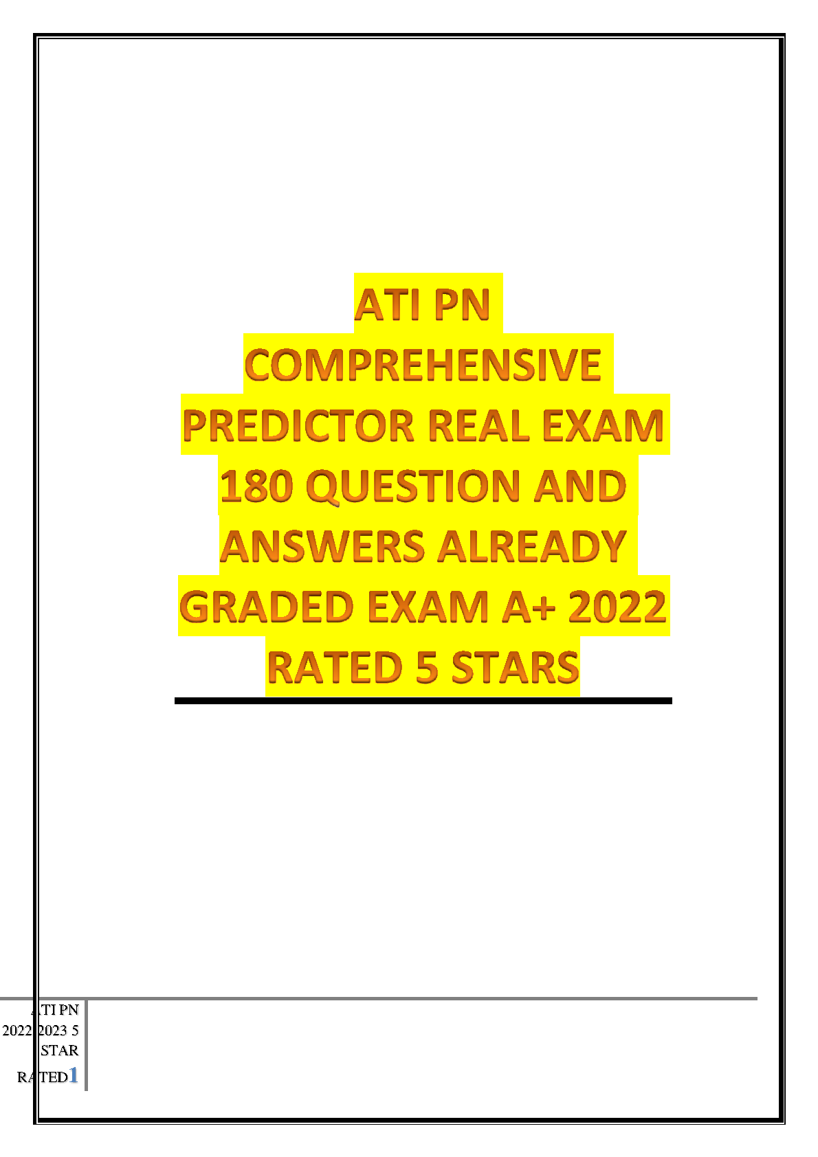 ATI PN Comprehensive Predictor Real Exam 2022/2023 - 180 Questions with Answers (Graded A+) - Guaranteed Success on Your First Attempt!