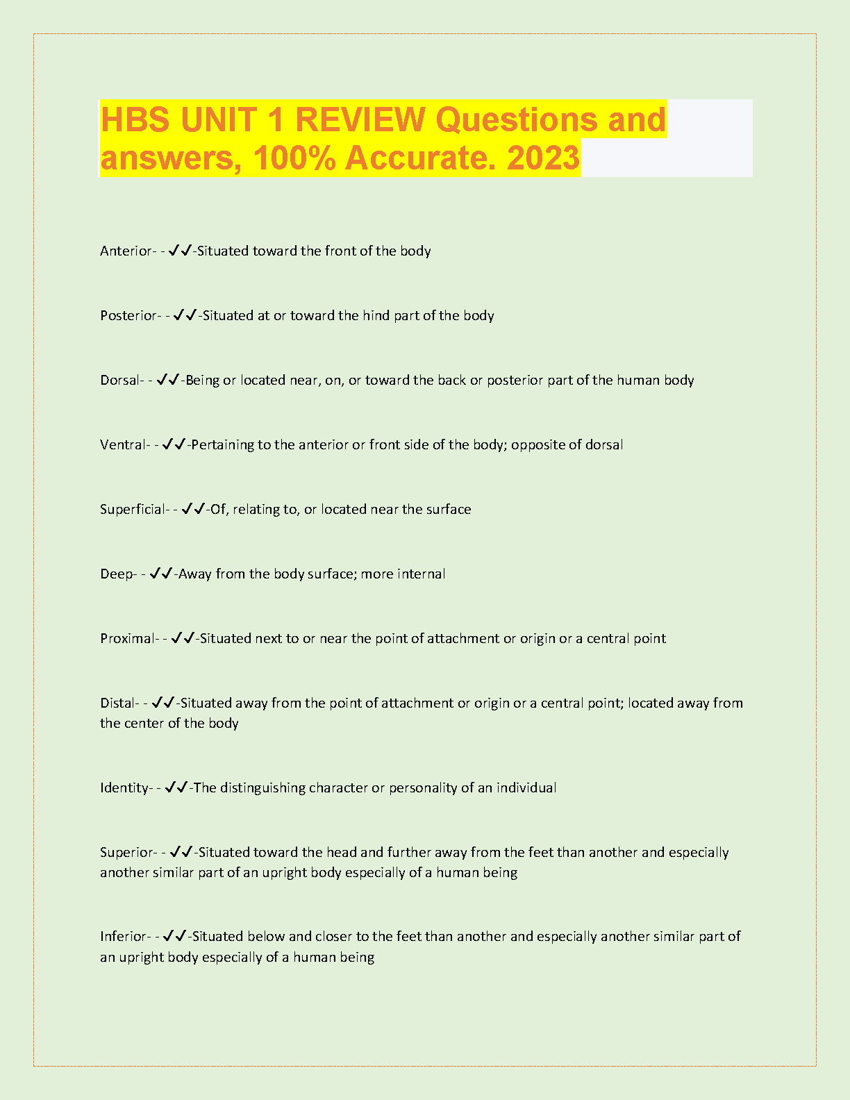 HBS Unit 1 Review Questions and Answers - 100% Accurate (2023 Edition)