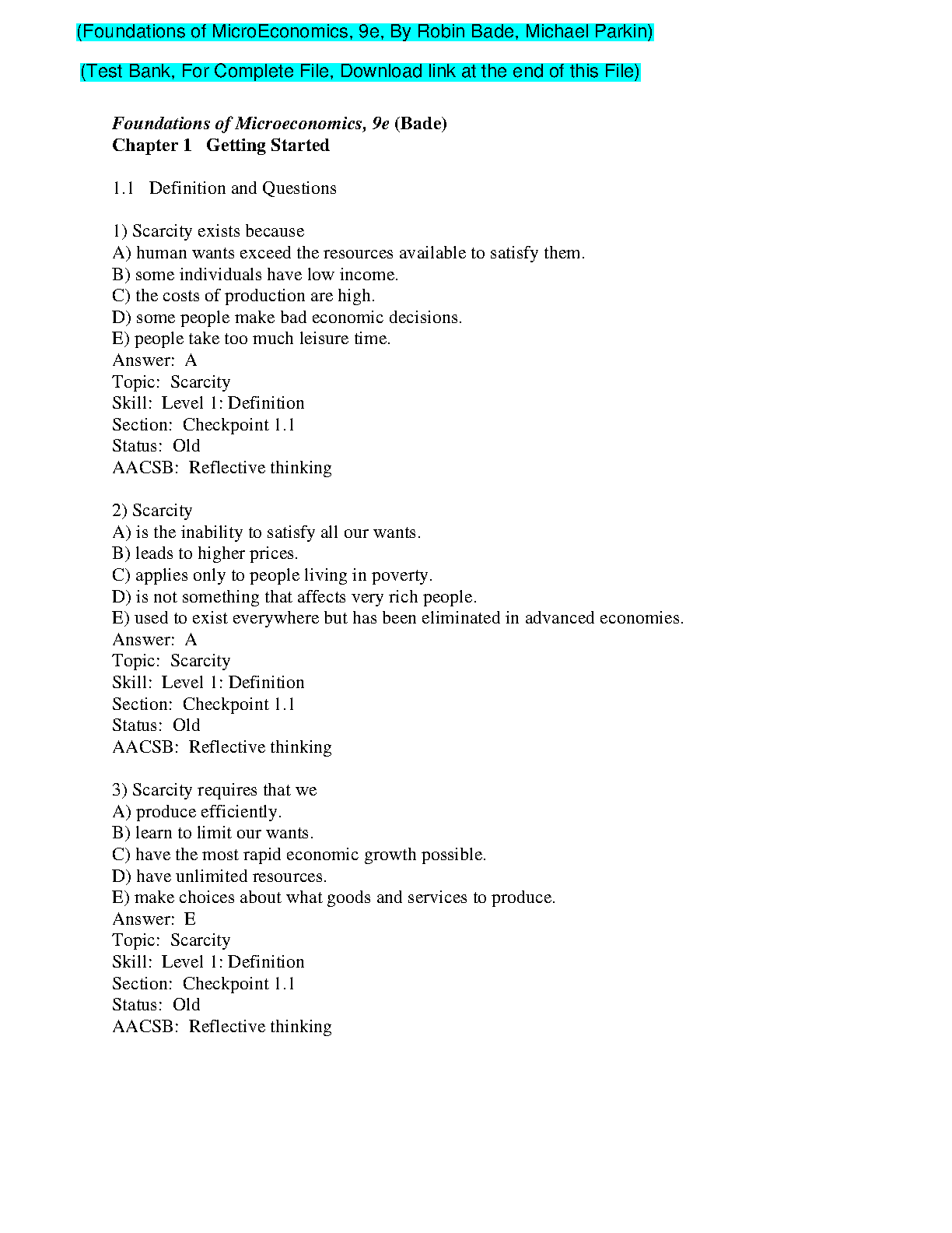 Get ready to ace your microeconomics exams with this comprehensive test bank for "Foundations of Microeconomics, 9e" by Bade and Parkin. The test bank includes a wealth of multiple-choice questions covering Chapter 1: Getting Started, providing students with ample practice to solidify their understanding of core economic concepts.