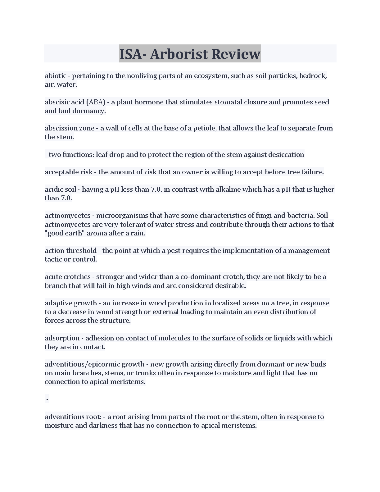 Pass your ISA Arborist exam on the first attempt with this comprehensive review guide. It covers all the essential topics, including abiotic factors, abscisic acid, abscission zones, and more.