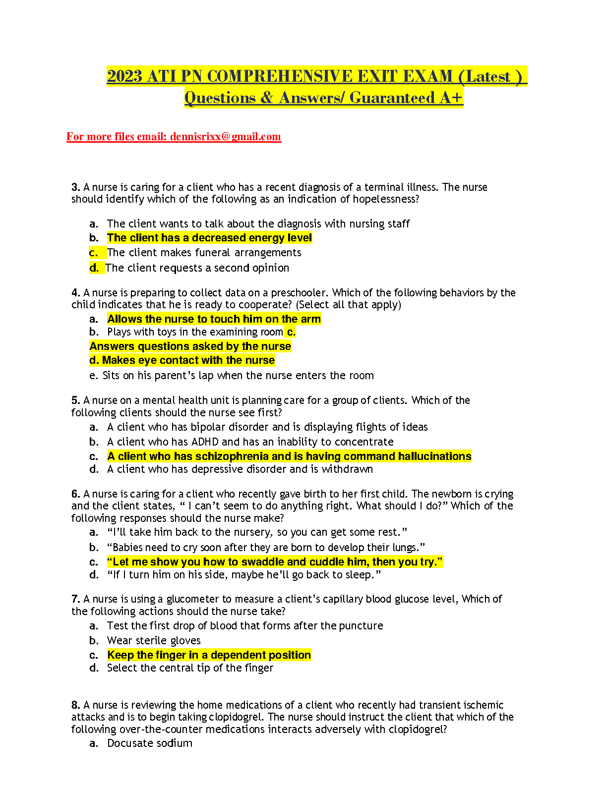 2023 ATPN Comprehensive Exit Exam (Latest) Questions & Answers/Guaranteed A+ By Demisrisxxx