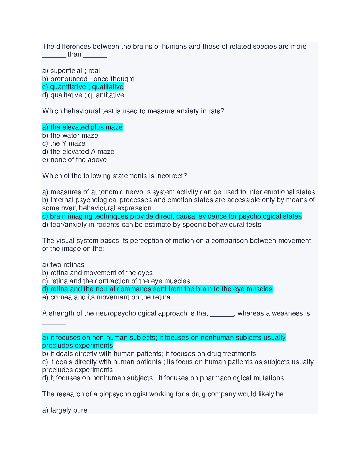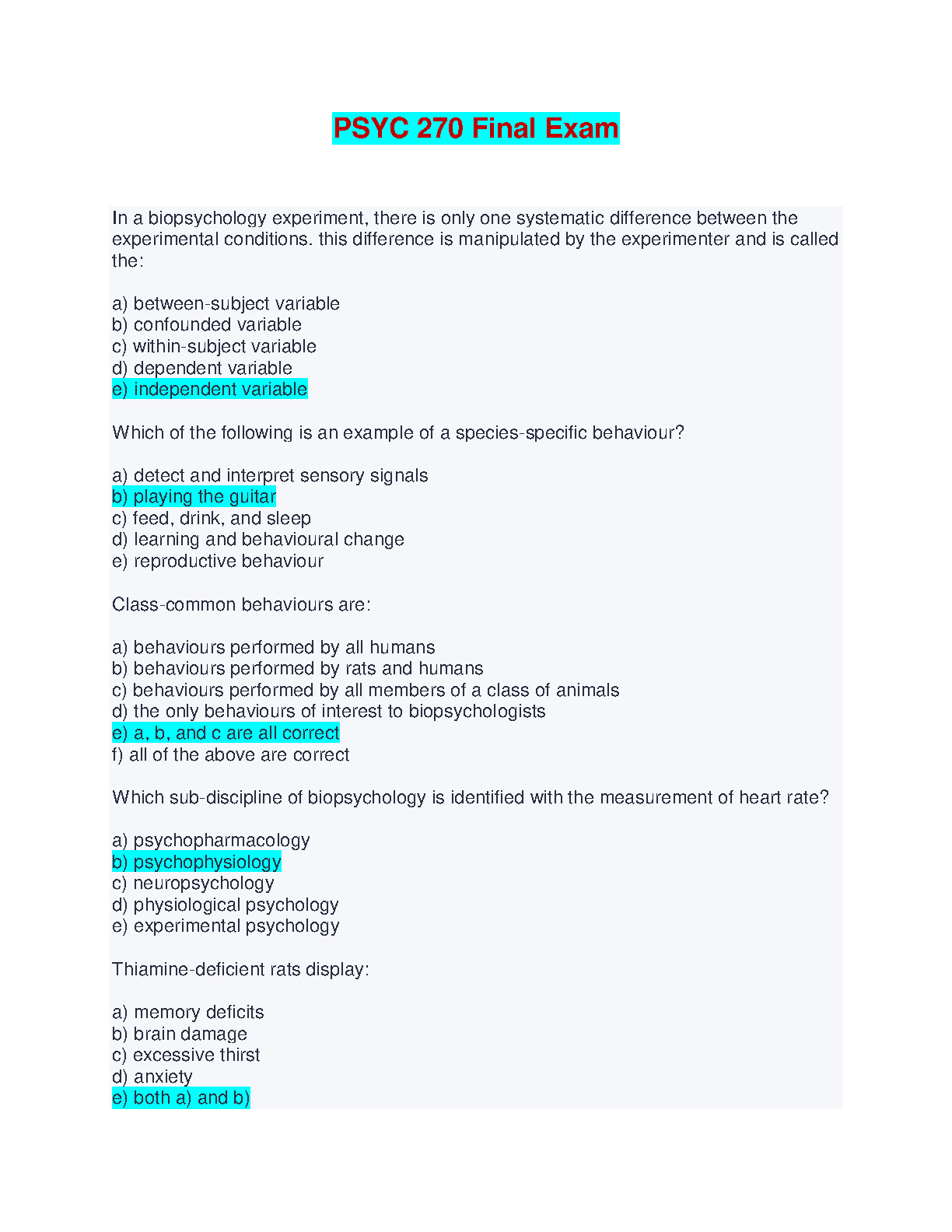 PSYC 270 Final Exam - Mastering Biopsychology for Success