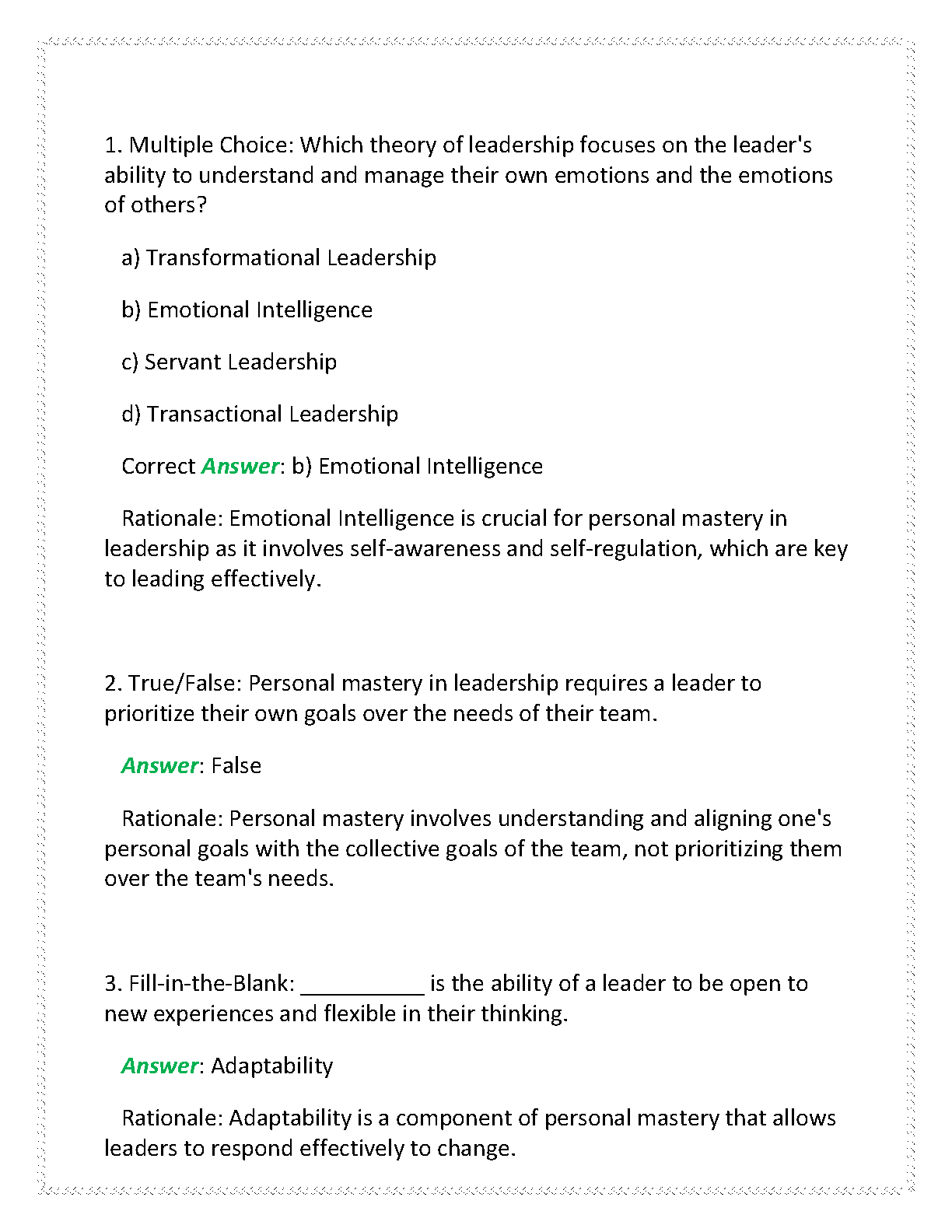 Leading with Personal Mastery: Comprehensive Final Assessment Test (D155 NURS 6431) 2024 Edition