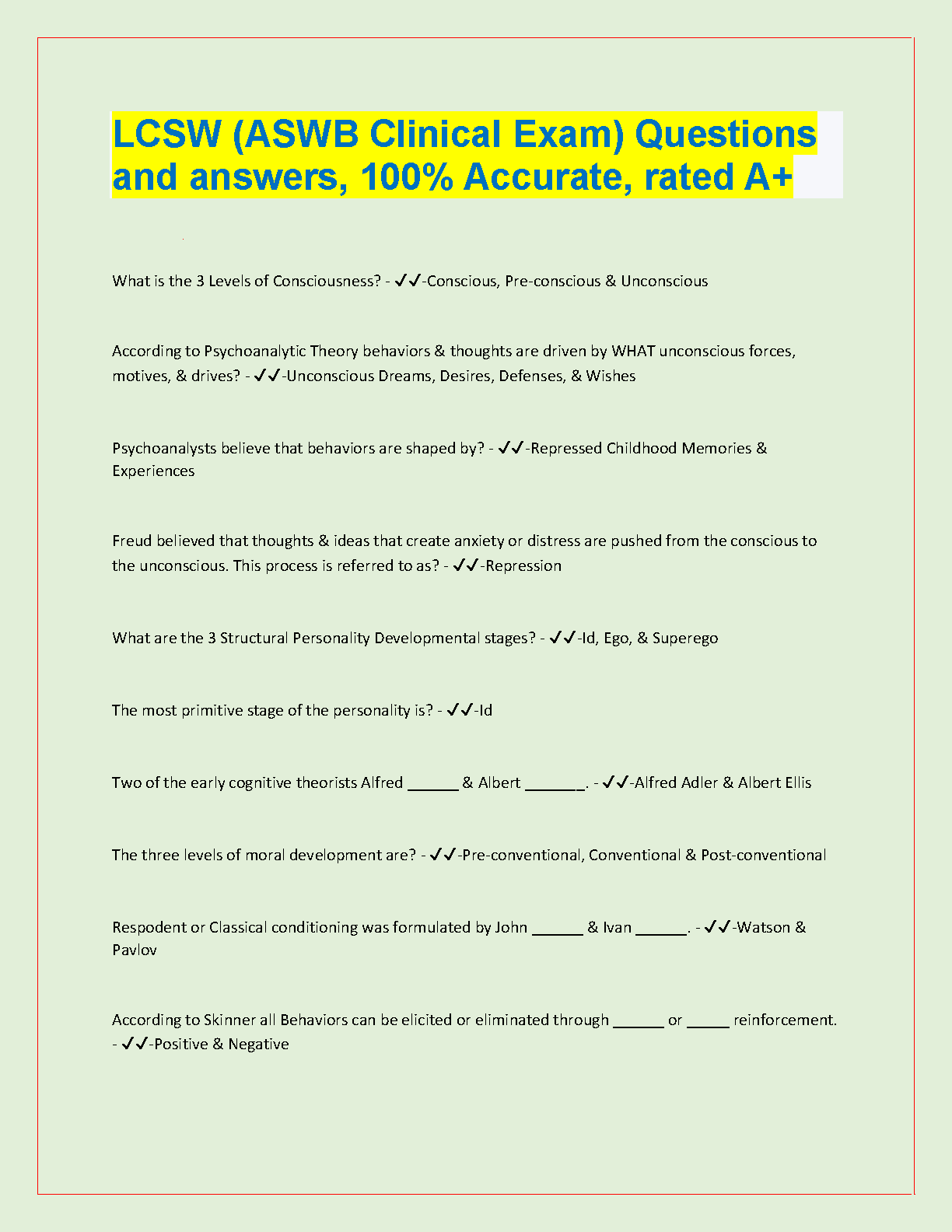 LCSW (ASWB Clinical Exam) Questions and Answers 100% Accurate, rated A+
