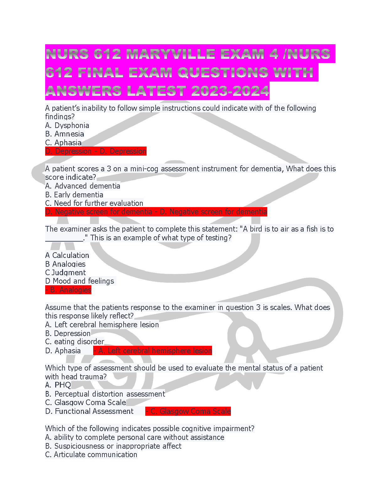 Nurs 612 Maryville Exam 4 / Nurs 612 Final Exam Questions with Answers Latest 2023-2024