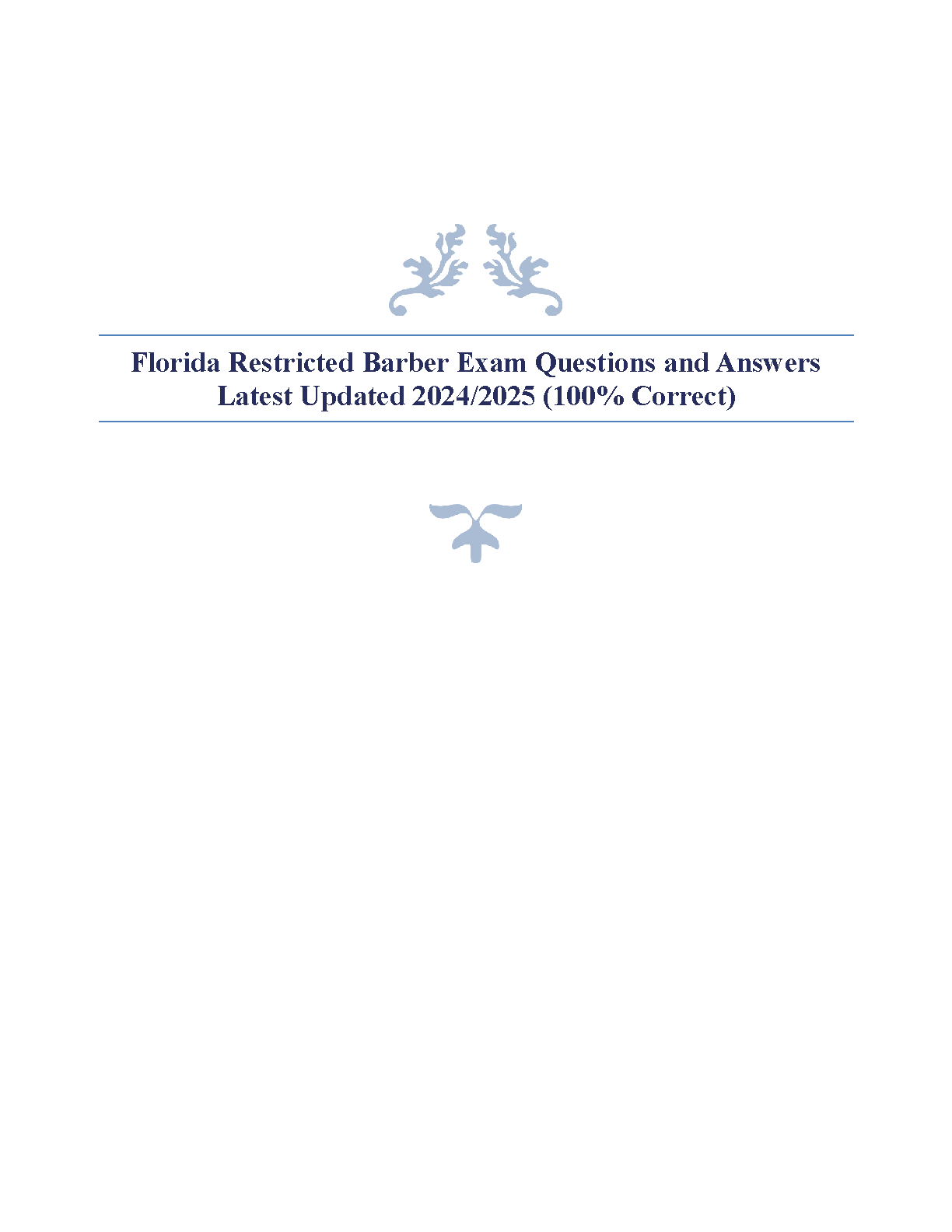 Ace your Florida Restricted Barber Exam on the first try! This comprehensive study guide contains practice questions and answers, all 100% accurate and updated for 2024/2025.