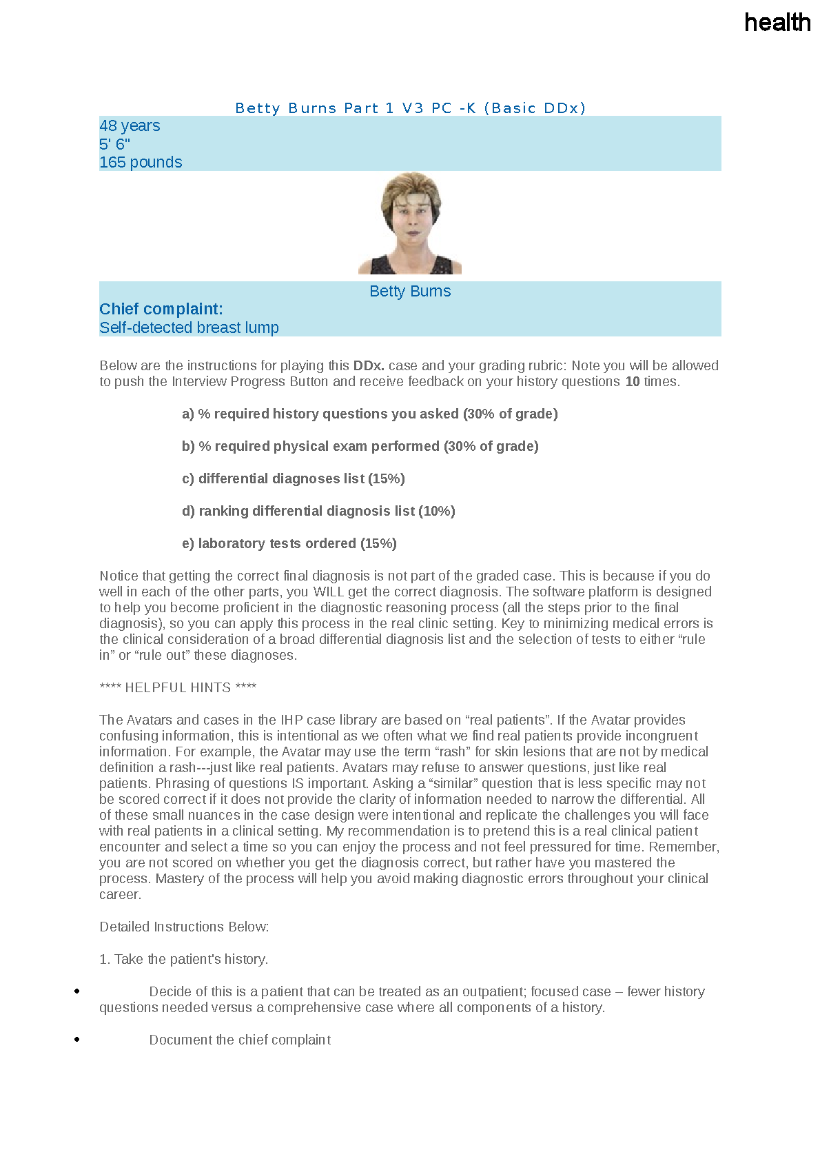 Betty Burns Part 1 V3 PC - K (Basic DDx) - 2024/2025 Edition - First Attempt Success Guide