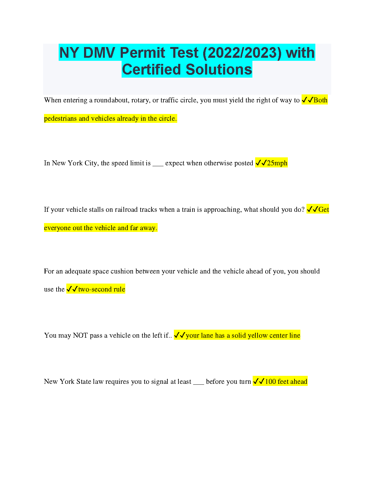 Master the New York DMV Permit Test with this comprehensive study guide. This resource features detailed explanations, practice questions, and certified solutions to help you understand and confidently pass your exam. Avoid costly resits and get your driver's license on the first try!