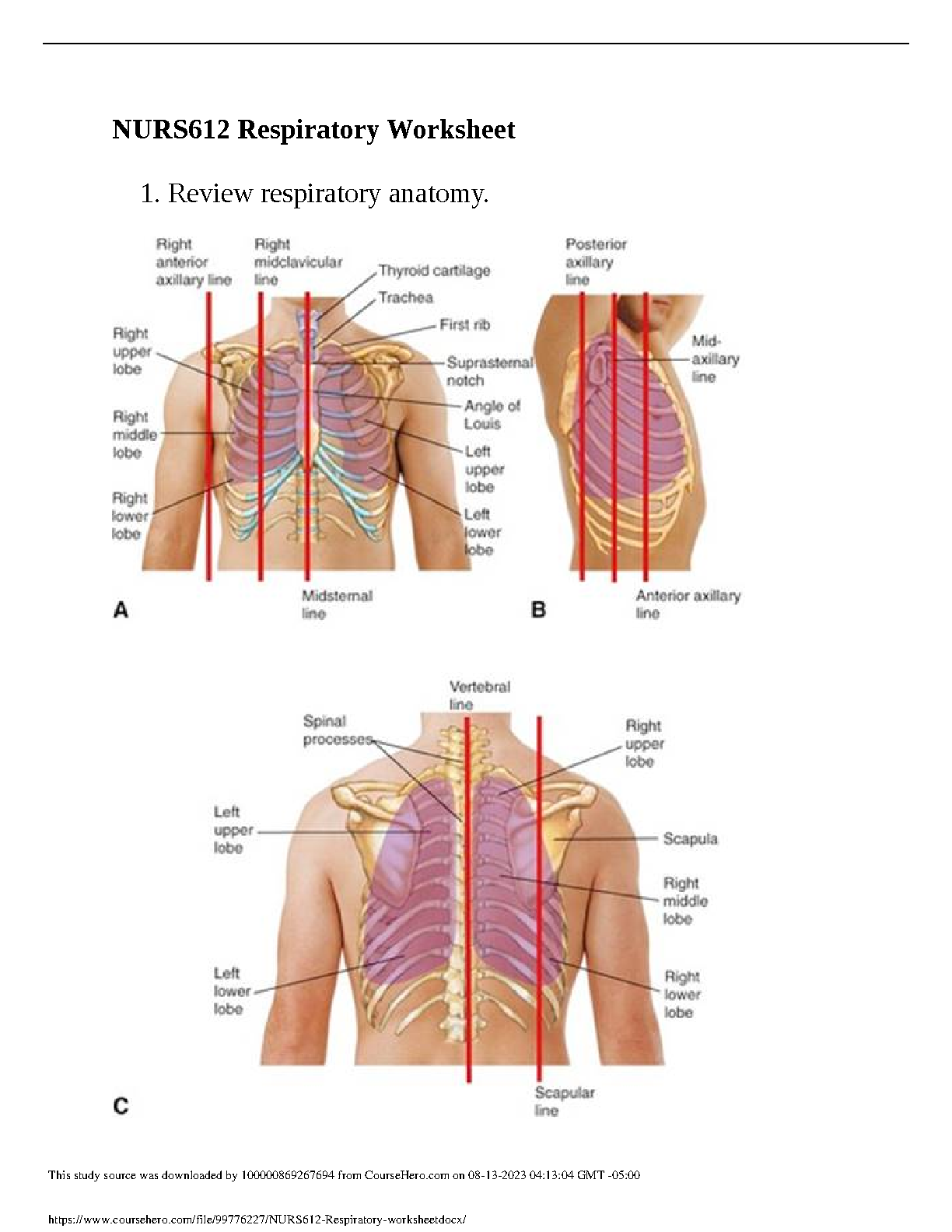 NURS612 Respiratory Anatomy Worksheet - Mastering Respiratory System for Success