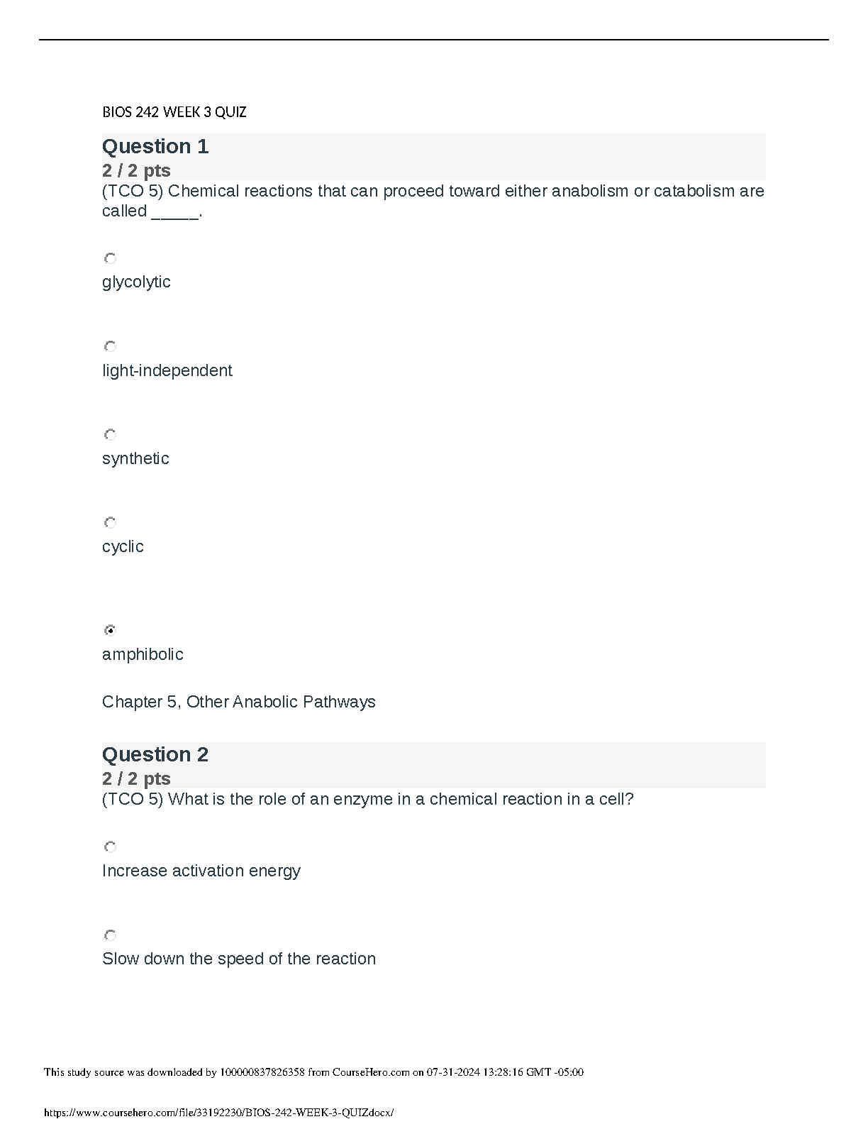 BIOS 242 Week 3 Quiz for 2024/2025 Academic Year - Ace Your Exams On The First Attempt