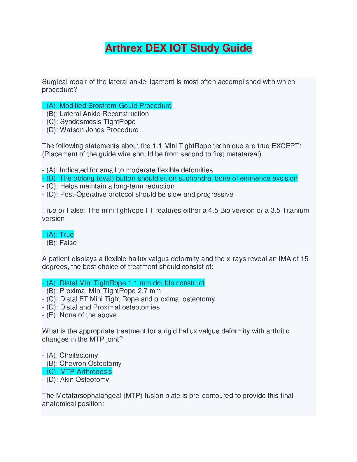 This comprehensive study guide, written by leading foot and ankle experts Michael A. Athanasiou, Thomas G. Anderson, and Jeffrey G. Dines, dives into the 1.1 Mini TightRope technique for surgeons. It includes key concepts, practice questions, and real-world scenarios to help you ace your exam and confidently perform this minimally invasive surgery.