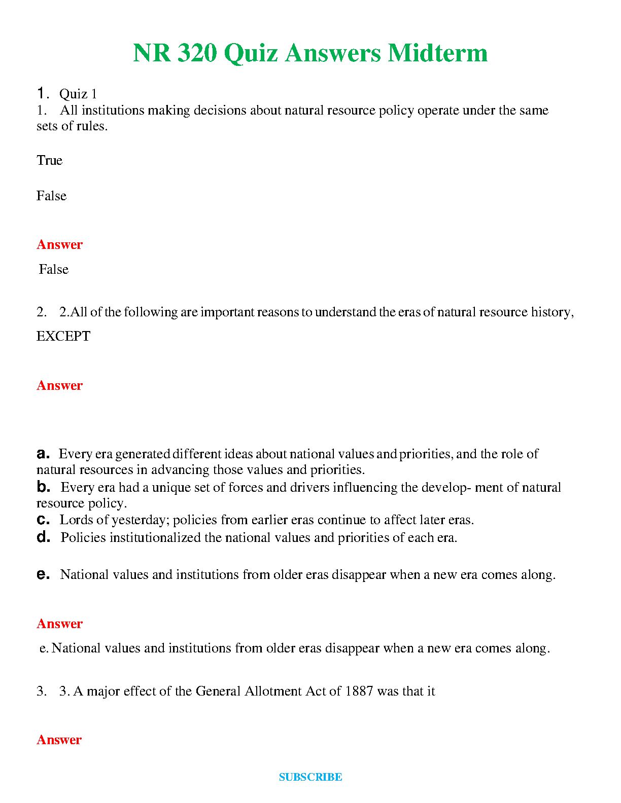 NR 320 Quiz Answers Midterm: Master Natural Resource Policy for Success