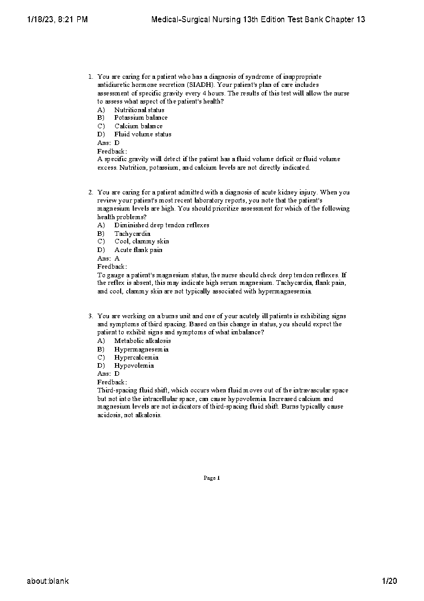 This comprehensive test bank for Medical-Surgical Nursing 13th Edition, authored by Ignatavicius, Workman, Rebar, and Heidt, offers a valuable resource for students preparing for exams. With its extensive coverage of key concepts and practice questions, this test bank is designed to help students master the essential content and achieve success.