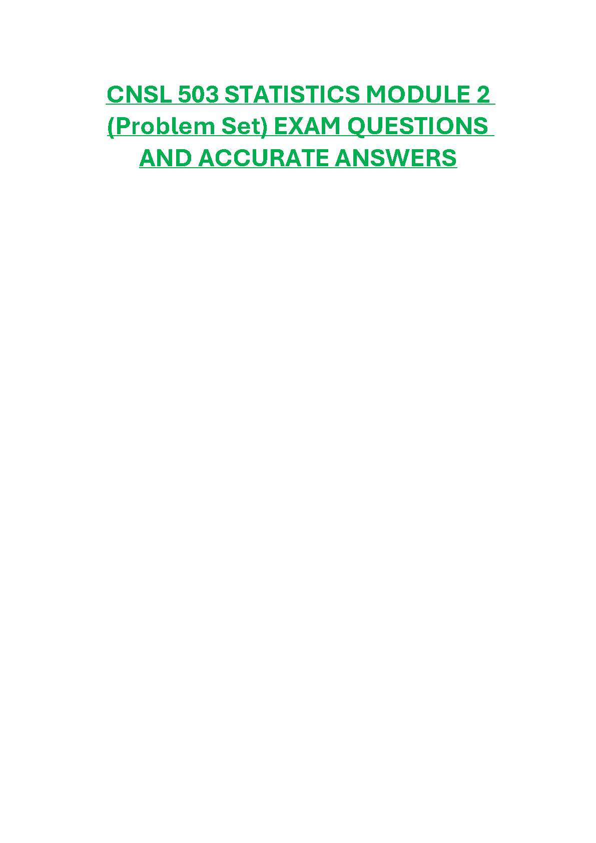 Ace your CNSL 503 Statistics Module 2 exam on your first attempt with this comprehensive set of exam questions and accurate answers. This resource is designed to help students excel in their studies and avoid any resits.