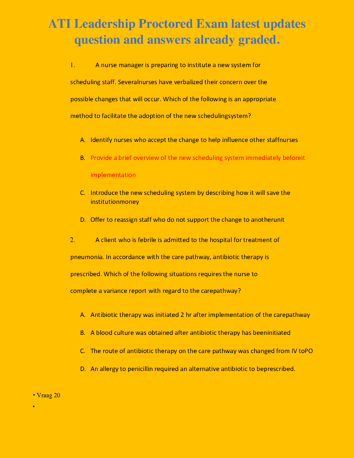 Get ready to conquer your ATI Leadership Proctored Exam with our comprehensive study guide! Our resource is packed with the latest updates, practice questions, and exam-focused strategies to ensure you pass with confidence on your first attempt. No more resits, just success!