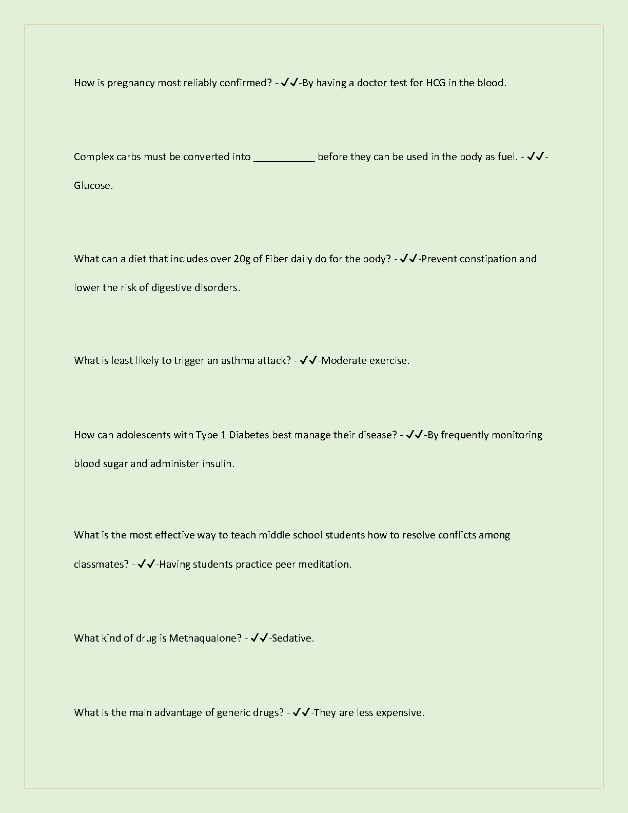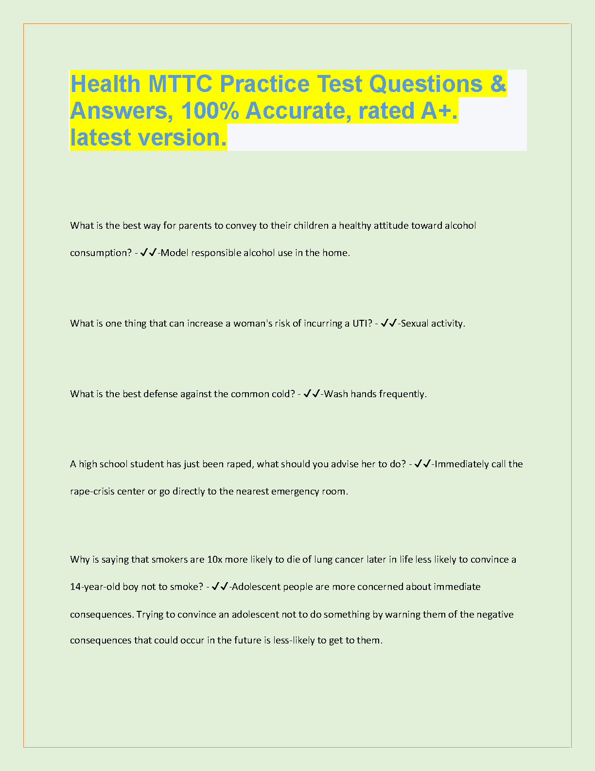 Health MTTC Practice Test Questions & Answers, 100% Accurate, Rated A+ - Latest Version 2024/2025