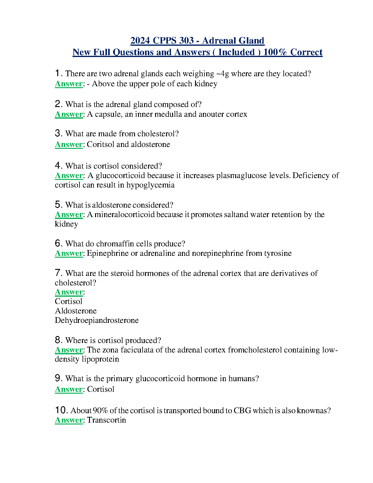 Ace your 2024 CPPS 303 exam with this comprehensive set of new full questions and answers covering the adrenal gland. Ensure your success on the first attempt and avoid resits with our expertly curated resource.