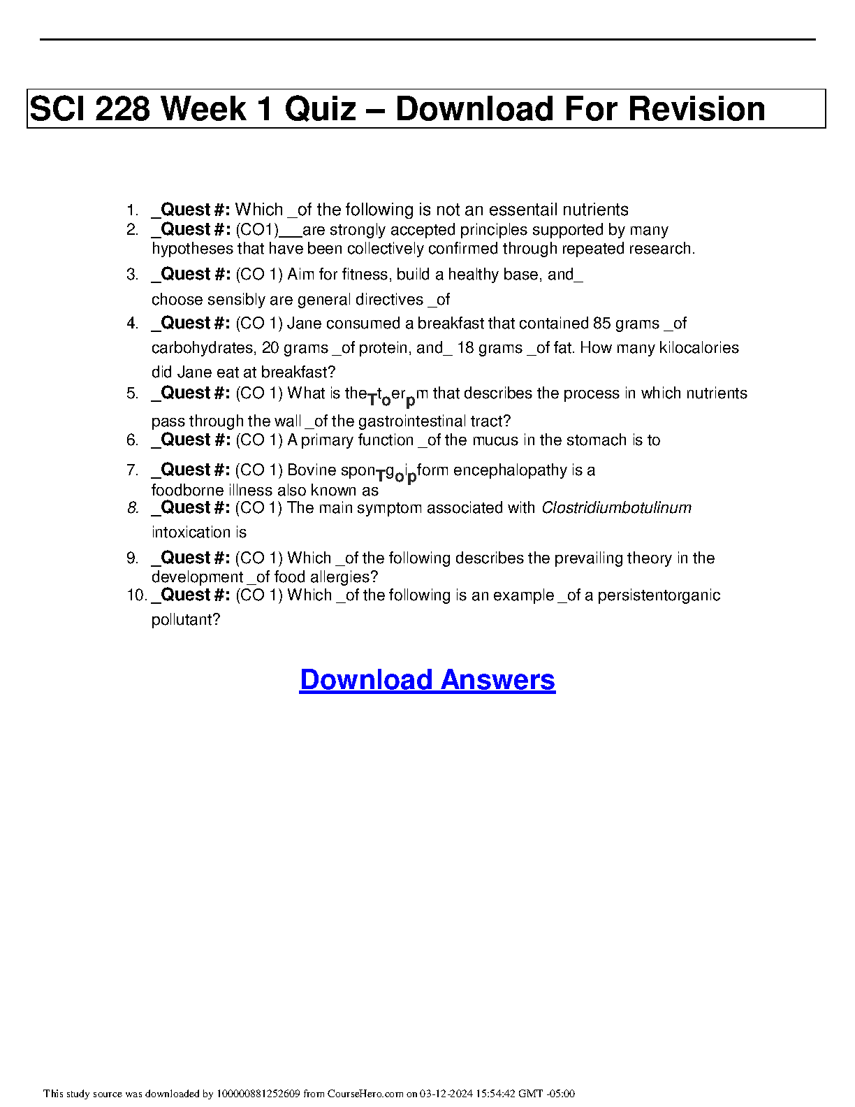 SCI 228 Week 1 Quiz - Download For Revision - 2024/2025 Edition - Ace Your Exams on the First Attempt