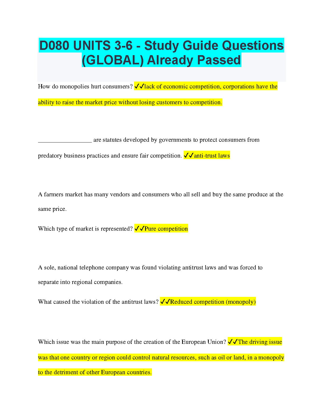 D080 UNITS 3-6 - Study Guide Questions (GLOBAL) Already Passed