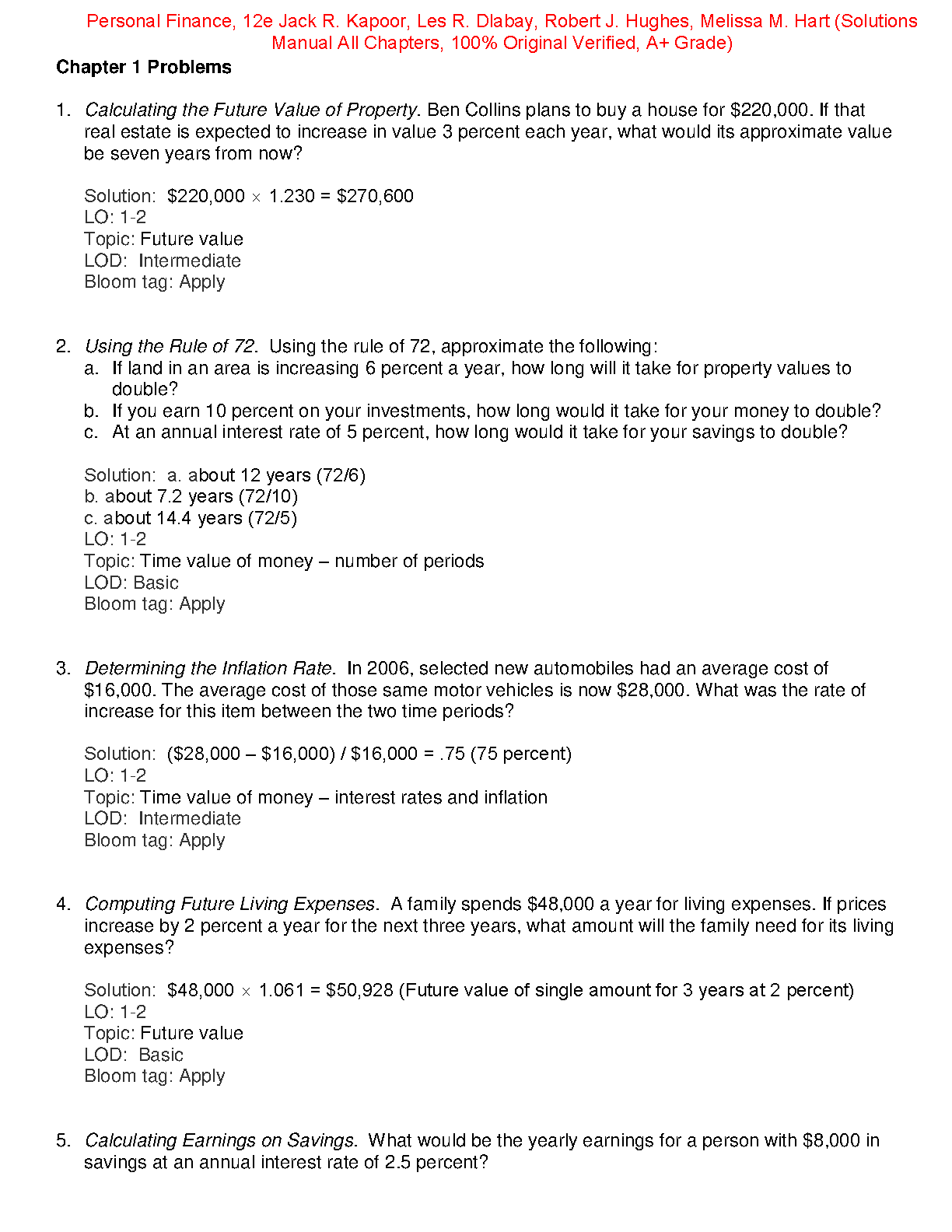 Personal Finance, 12e Jack R. Kapoor, Les R. Dlabay, Robert J. Hughes, Melissa M. Hart (Solutions Manual All Chapters, 100% Original Verified, A+ Grade)