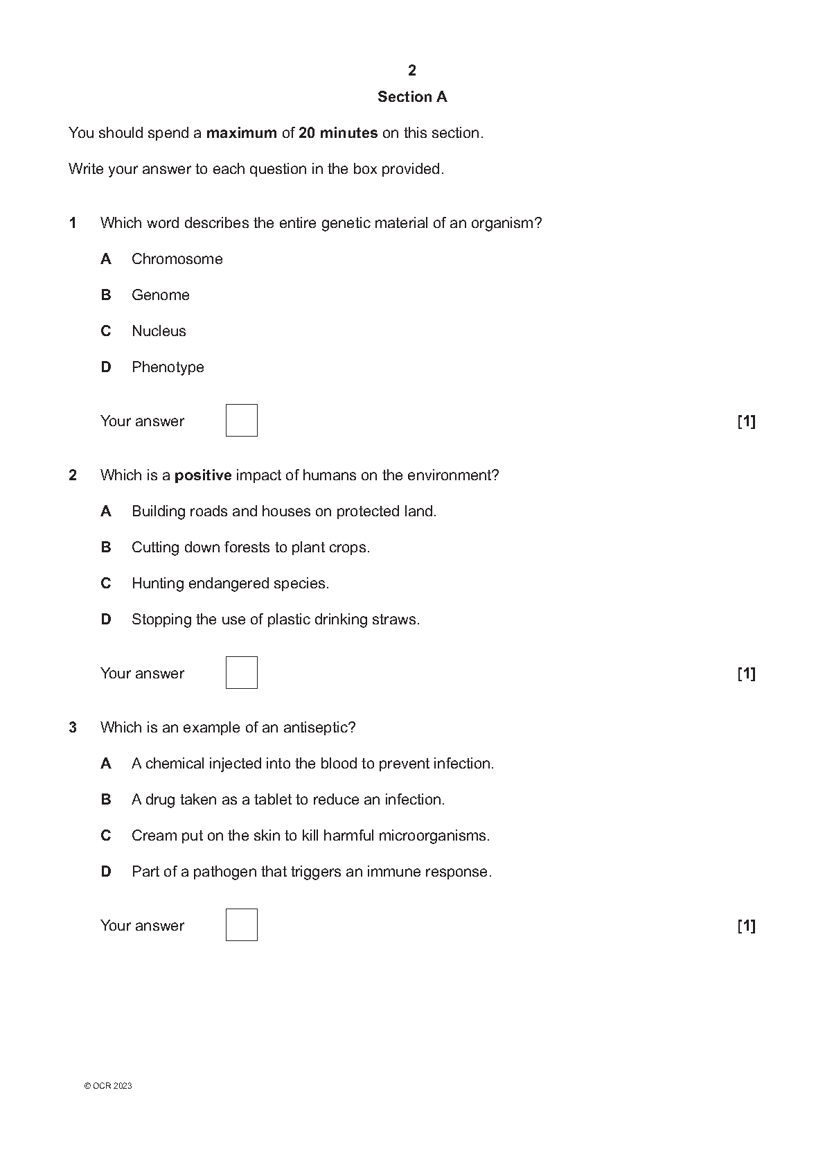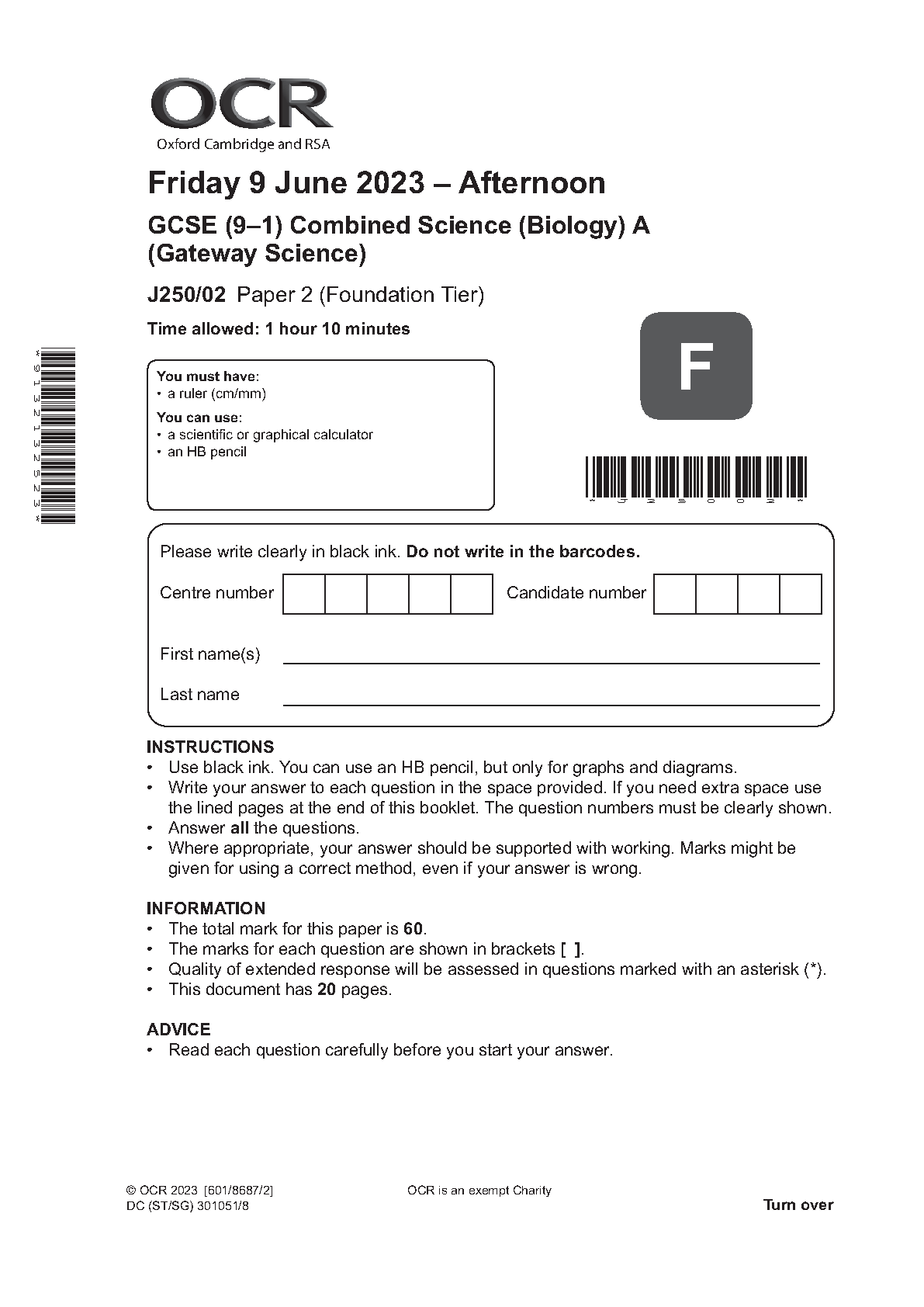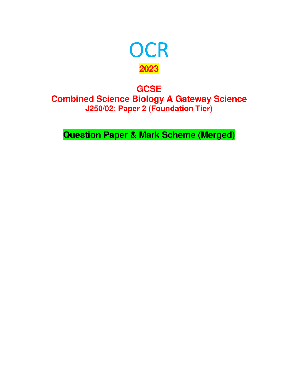 OCR GCSE Combined Science Biology A Gateway Science J250/02: Paper 2 (Foundation Tier) 2023 Question Paper & Mark Scheme (Merged)