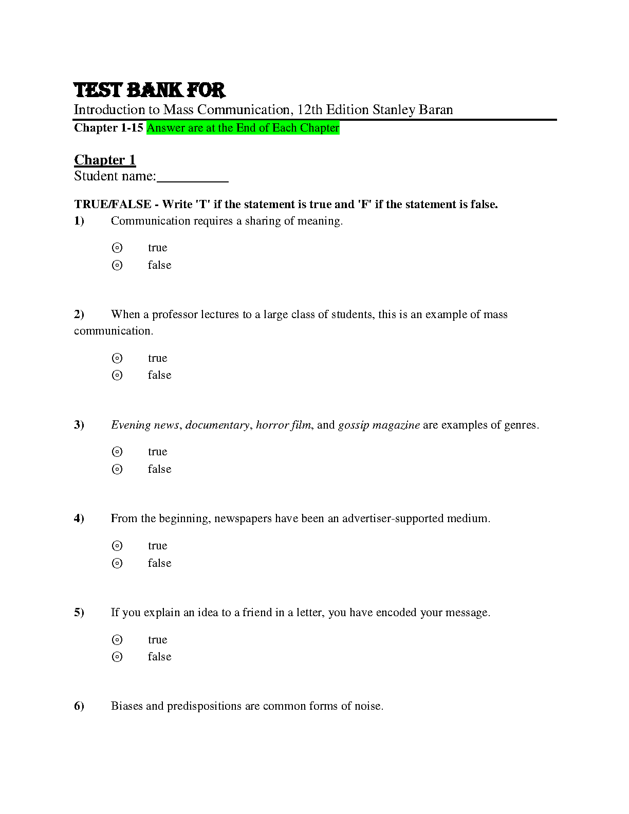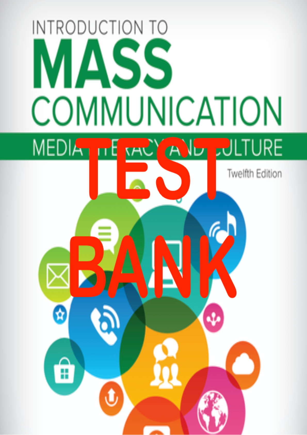 Enhance your understanding of Mass Communication with this comprehensive Test Bank for the 12th Edition of "Introduction to Mass Communication: Media Literacy and Culture" by Joseph Turow and Jeffrey Cole. This invaluable resource provides a wide range of exam-style questions covering the key concepts and theories explored in the textbook. Ace your quizzes and exams with confidence!
