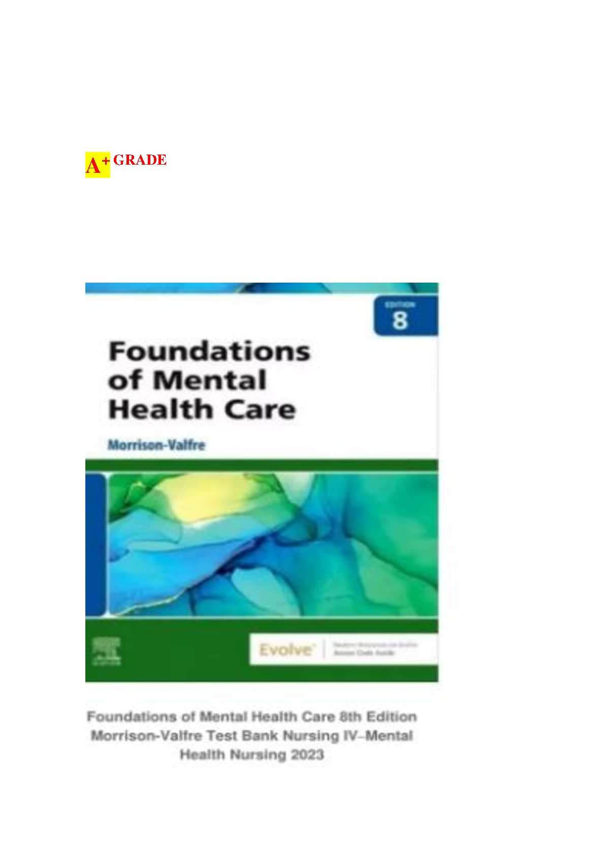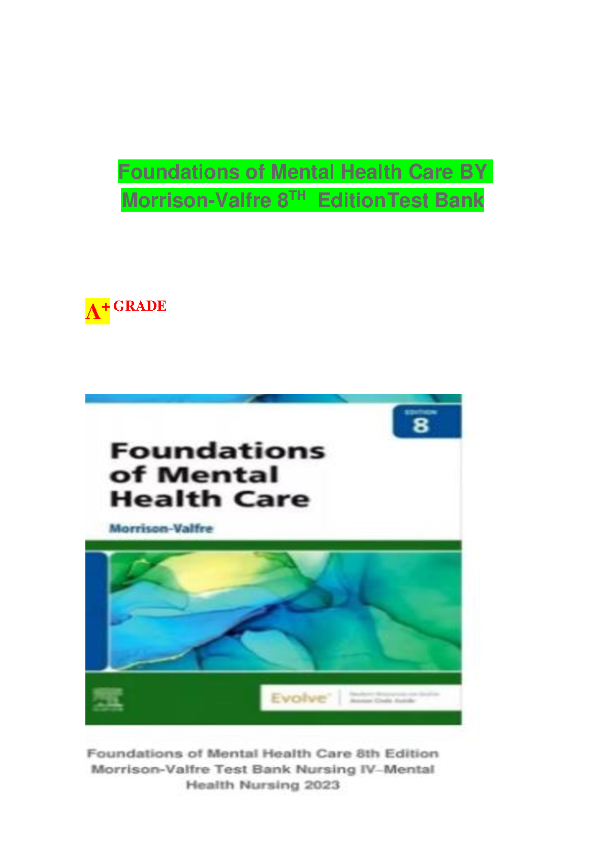 Prepare for success in your mental health nursing courses with this comprehensive test bank, covering the 8th edition of Foundations of Mental Health Care by Morrison-Vaivre. This resource is specifically designed to help students master the material and ace their exams, ensuring a strong foundation for future success.
