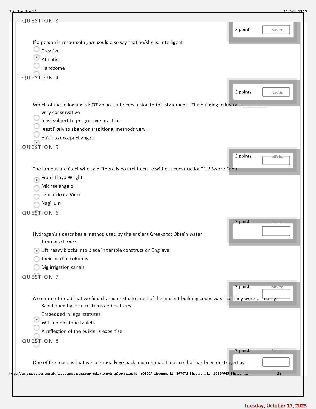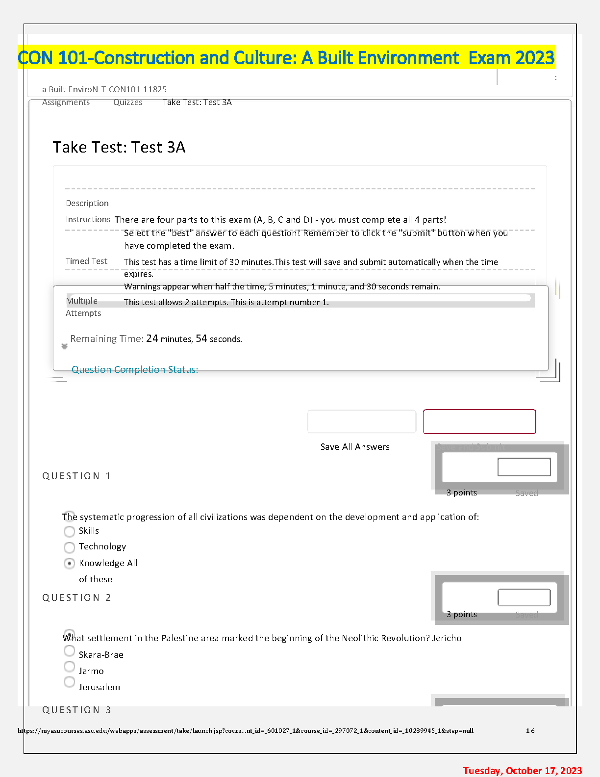 CON 101-Construction and Culture: A Built Environment Exam 2023 - Take Test: Test 3A