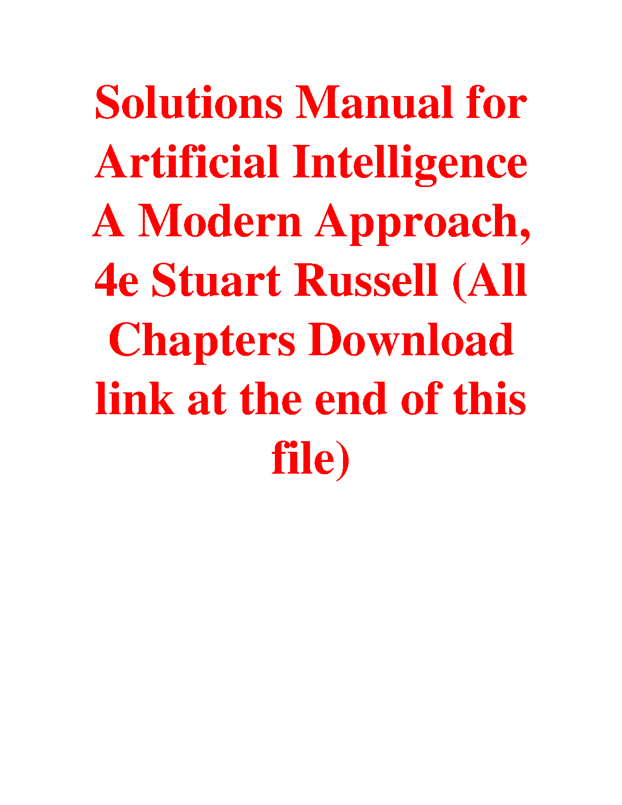 Solutions Manual for Artificial Intelligence A Modern Approach 4th Edition by Stuart Russell and Peter Norvig - Ace Your Exams in 2024/2025