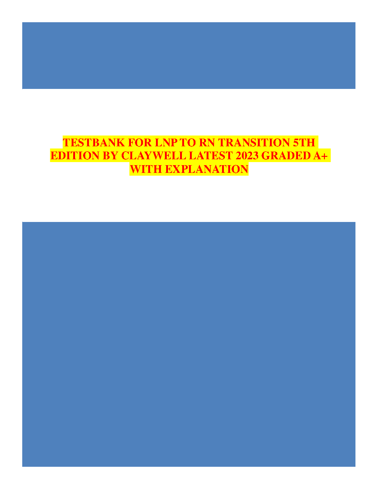 Test Bank for LPN to RN Transition 5th Edition by Claywell, Latest 2023 Graded A+ with Explanations