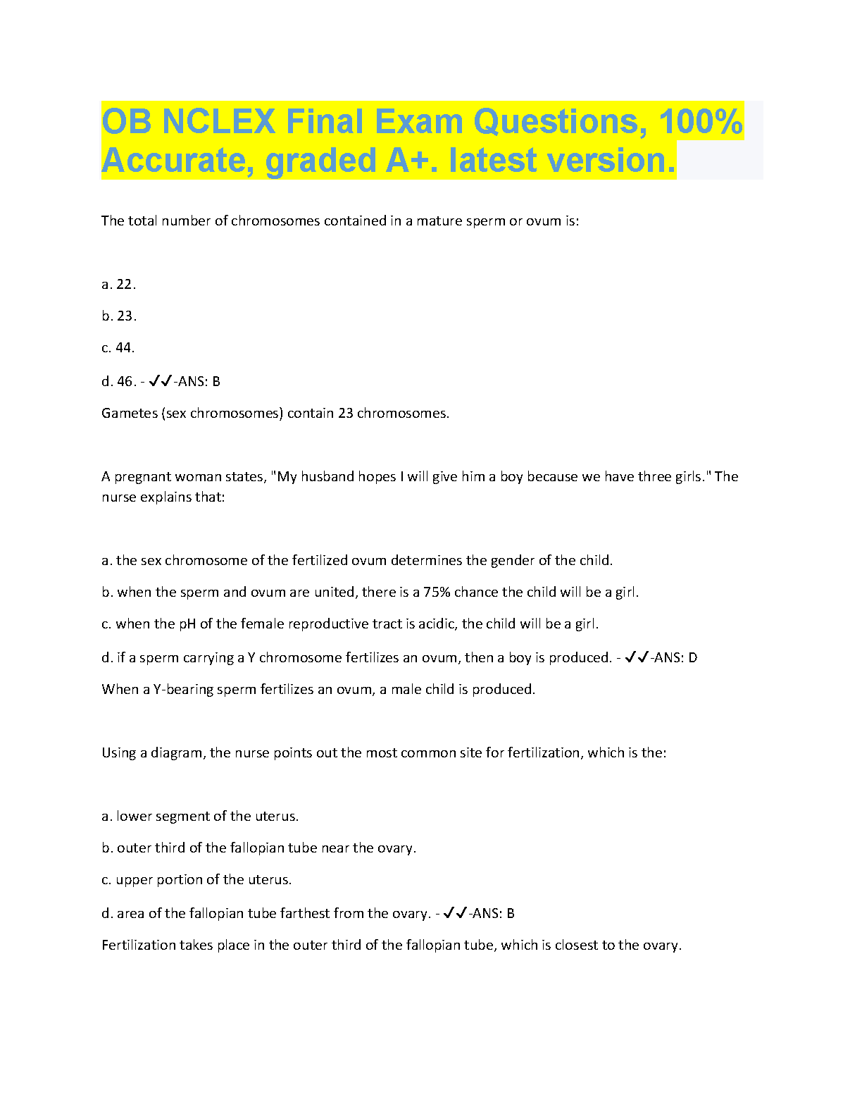 OB NCLEX Final Exam Questions, 100% Accurate, Graded A+ Latest Edition, 2024-2025 Edition by [COMPLETE AUTHORS LIST]