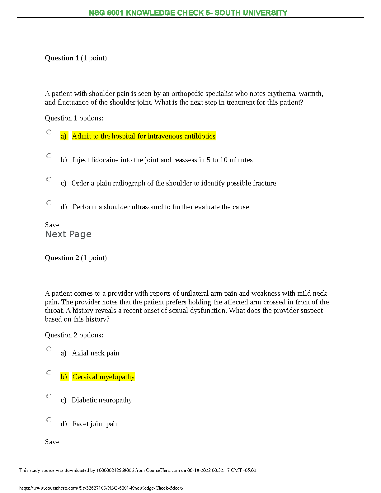NSG 6001 KNOWLEDGE CHECK 5 SOUTH UNIVERSITY. QUESTIONS AND ANSWERS 2023/2024