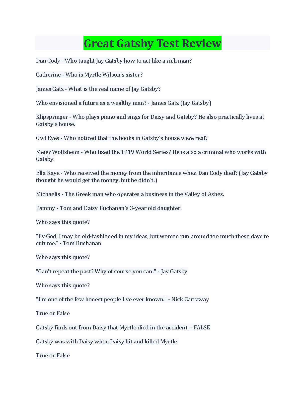 The Great Gatsby Test Review - F. Scott Fitzgerald, A Comprehensive Guide to Master the Classics for 2024/2025