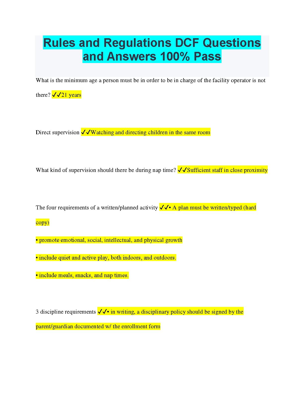 DCF Rules and Regulations Questions and Answers 100% Pass - 2024/2025 Edition