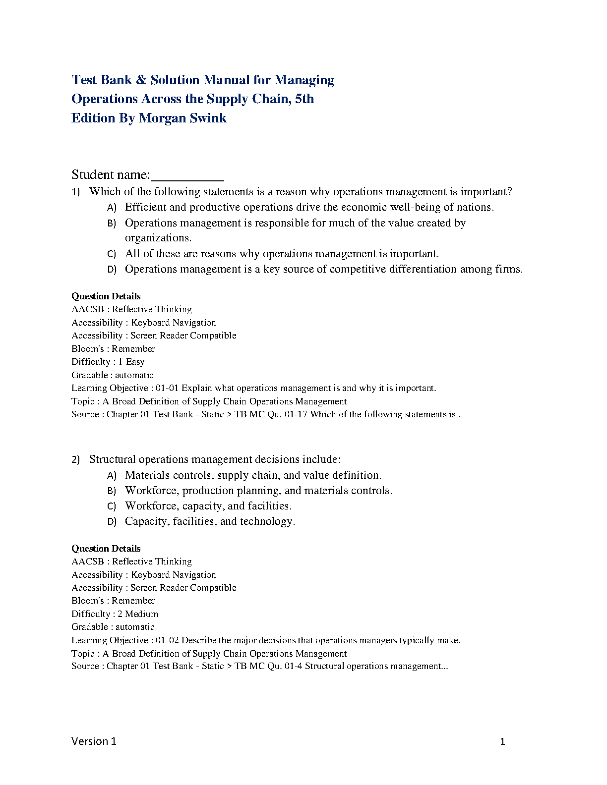 Ace your Operations Management exams with this comprehensive study guide for Managing Operations Across the Supply Chain, 5th Edition by Morgan Swink, Steven A. Melnyk, and Janet L. Hartley. This resource is designed to help you master the core concepts and achieve exam success on your first attempt.